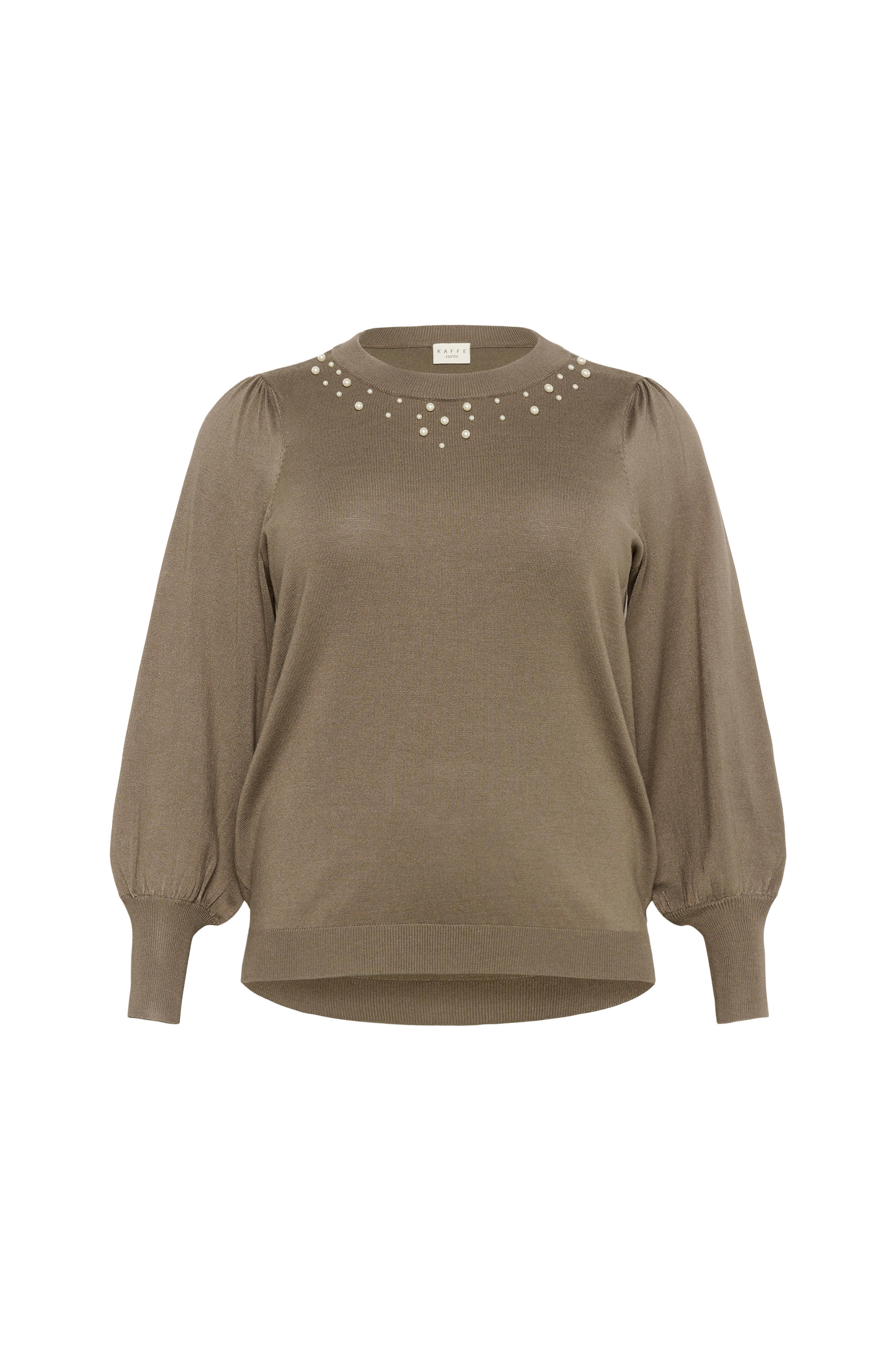 • Blød, fintstrikket Pullover i viskoseblanding• Rund, ribbet halsudskæring• Dekorative perler oppe foran• Ballonærmer med brede, tynde ribmanchetter• Ribmanchet ved nederste kant• Plusstørrelser