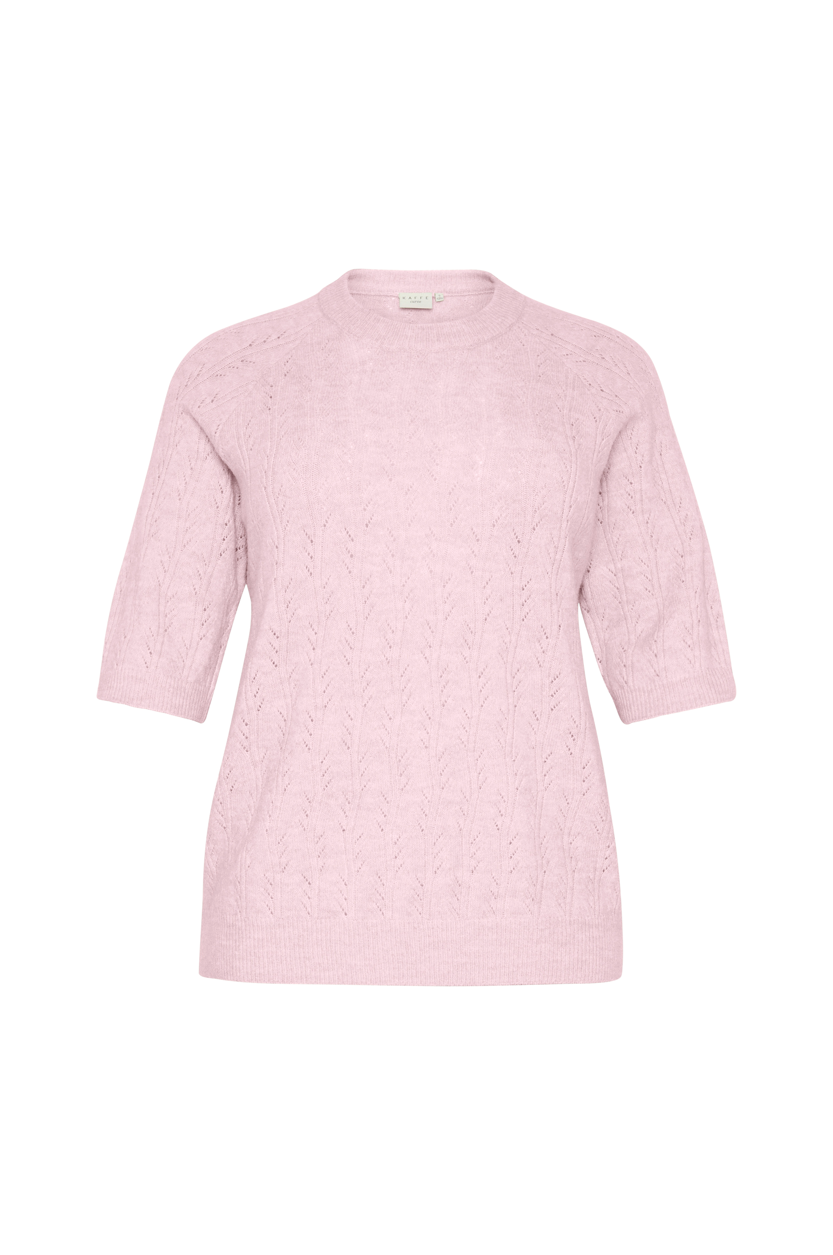 • Mønsterstrikket trøje med hulmønster• Rund, ribbet halsudskæring• Korte ærmer• Ribstrik ved manchetterne og nederst• Store størrelser