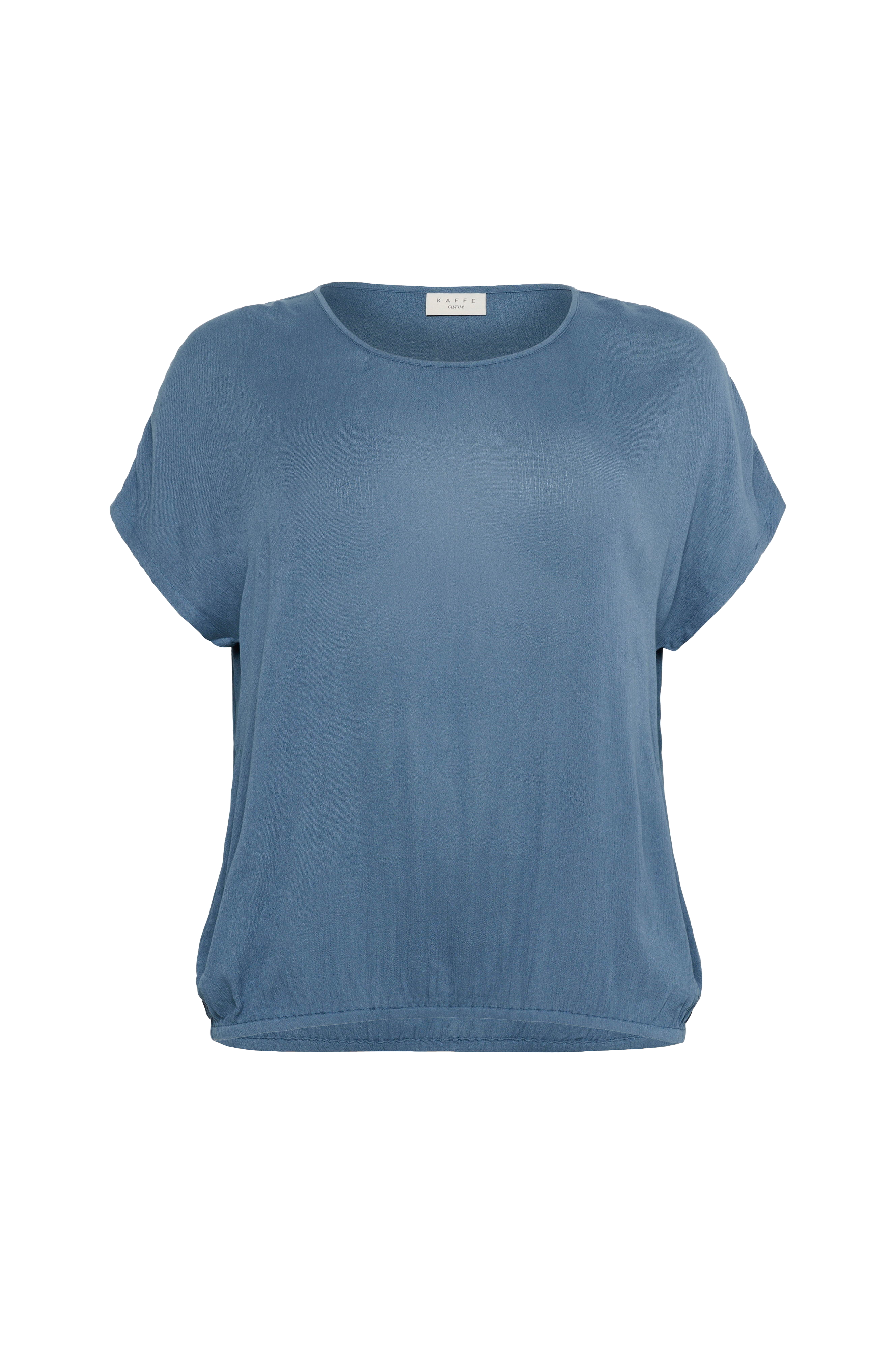 Lige model med løst snit som har lav skulder og kort ærme. Rund hals med smal, påsyet kant samt indsat elastik i kanten forneden.