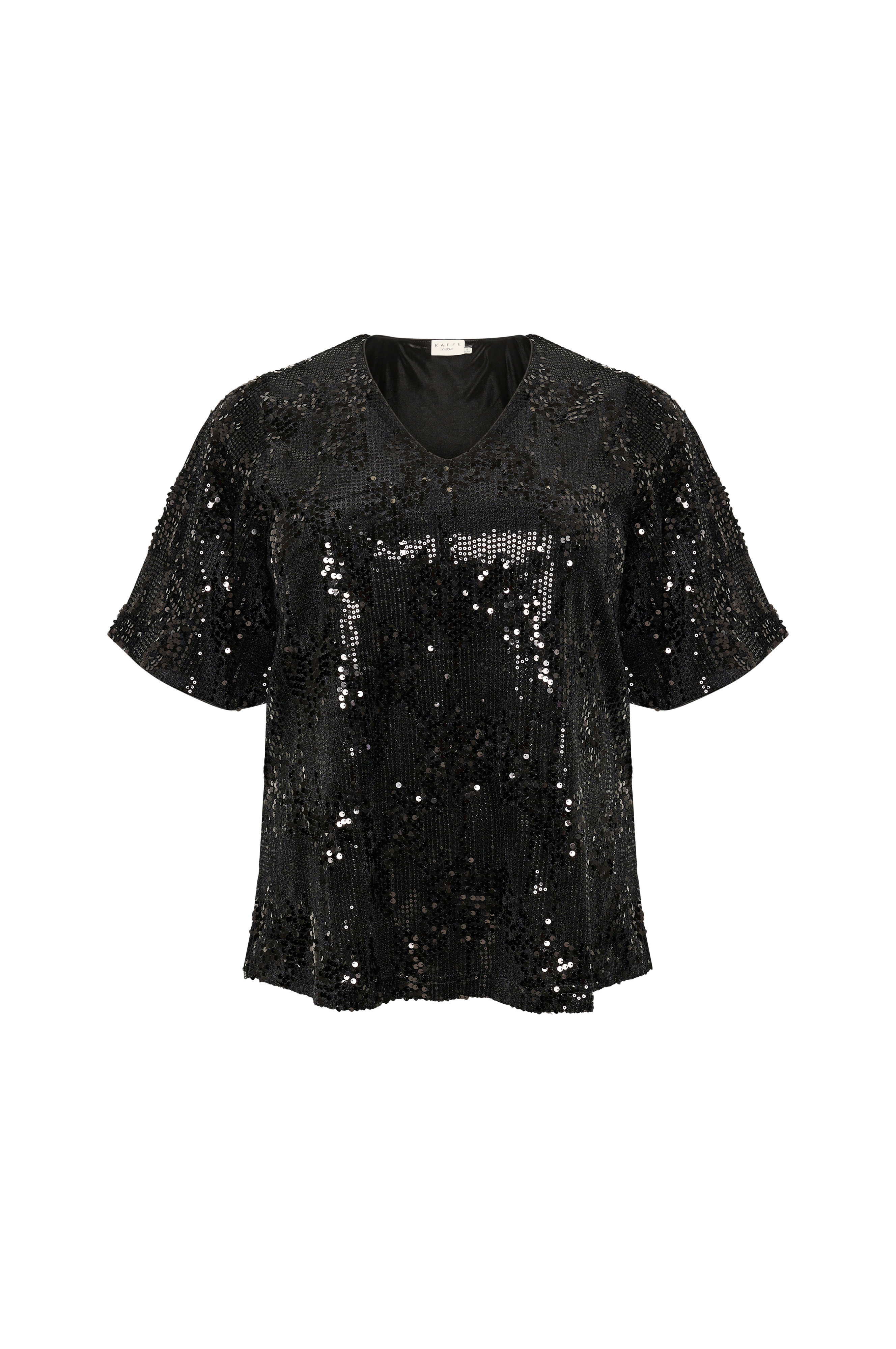 • Top med pailletter• V-formet halsudskæring• Korte trompetærmer• Elastisk for• Store størrelser