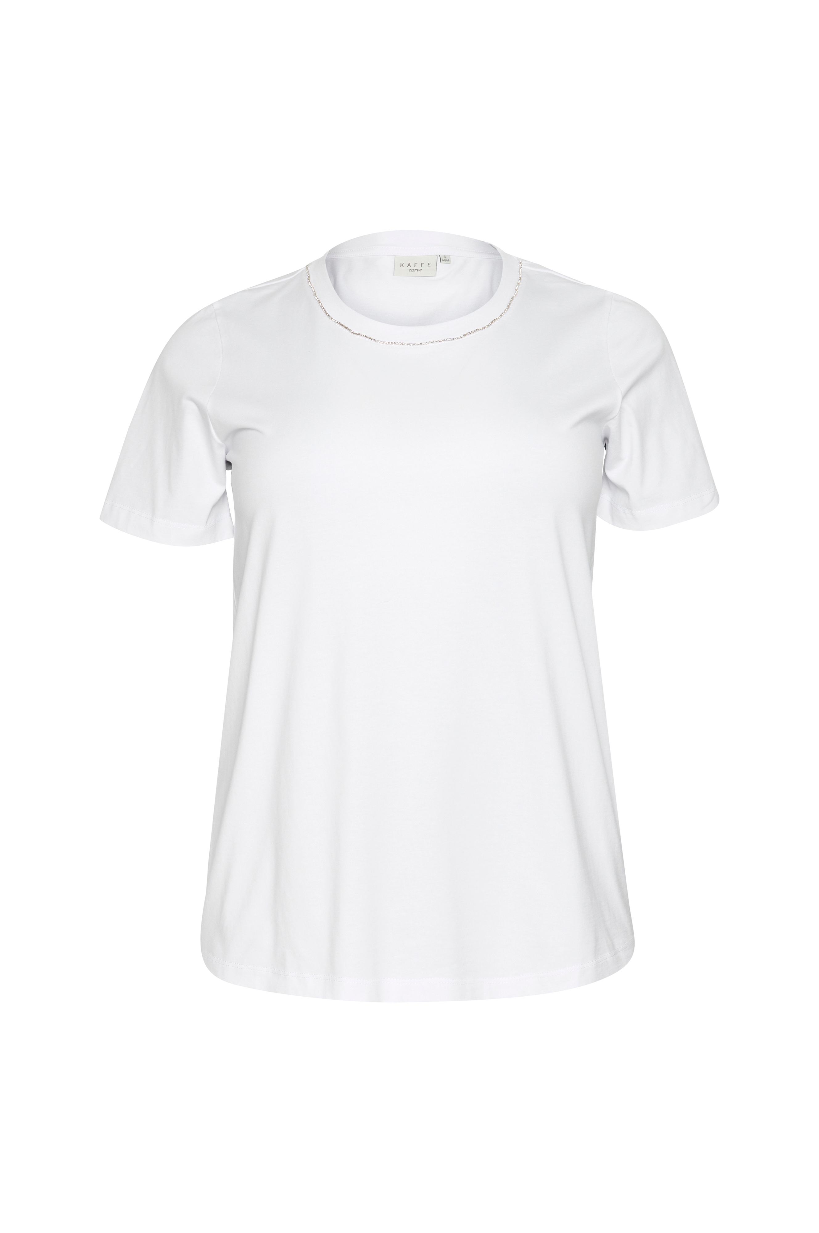 • Lige model med kort ærme• Rund hals med glitrende rhinstene foran