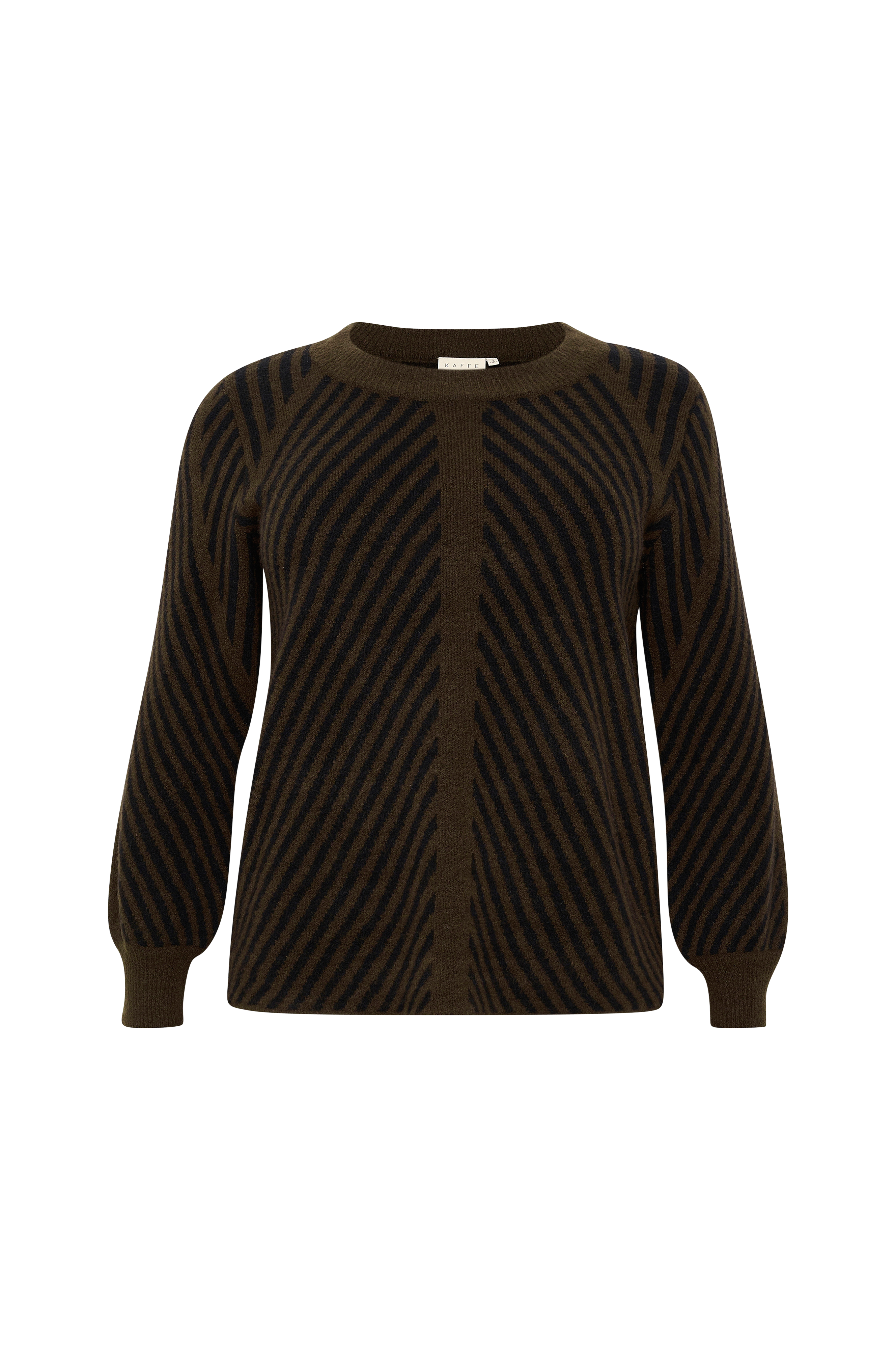 • Store størrelser• Lige, mønsterstrikket model• Rund hals med ribbet kant• Manchet i rib ved manchetterne