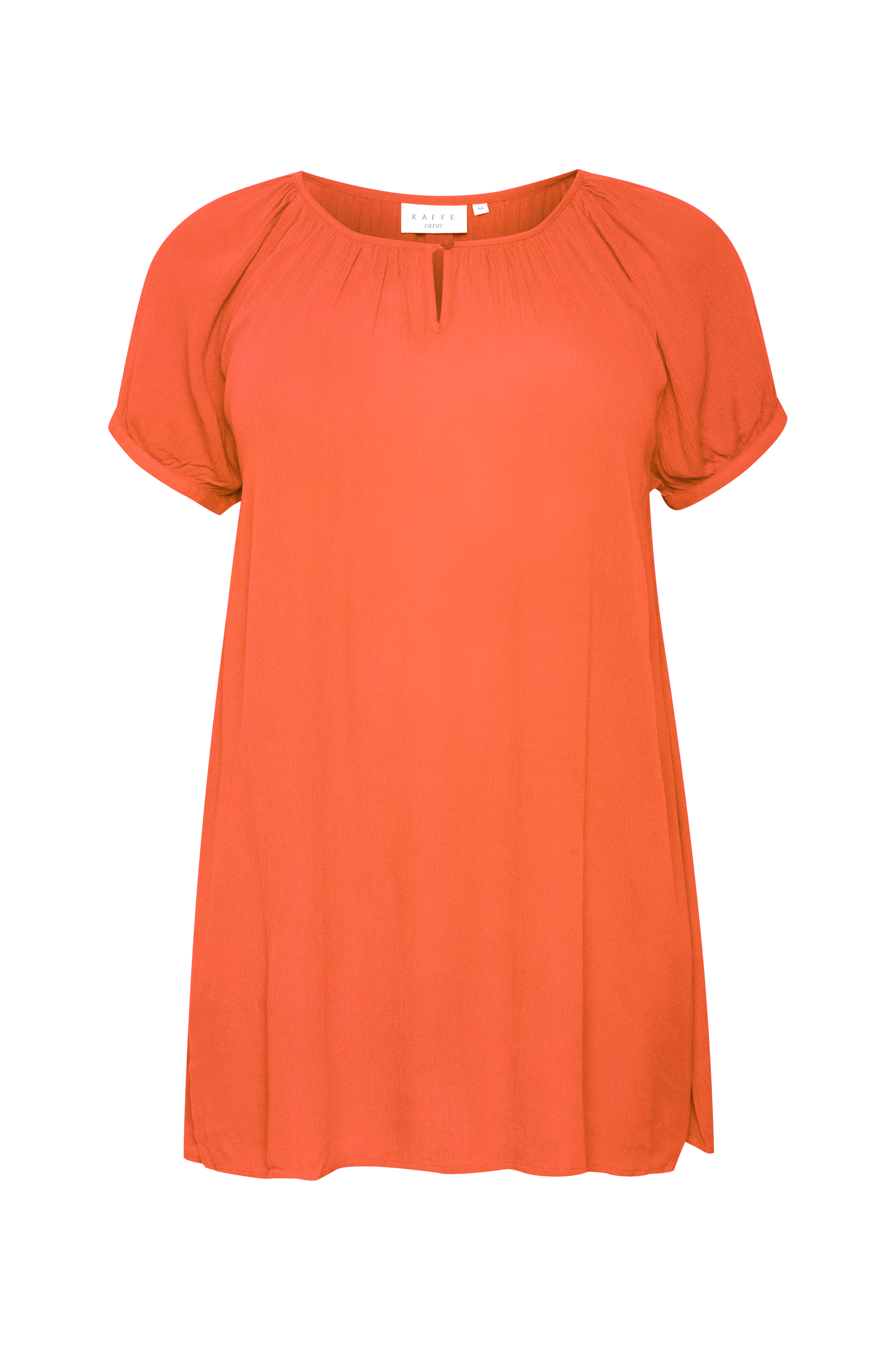 • Tunika i tynd viskose med rynket struktur • Korte korte ærmer med manchet, knap og nedsænkede skuldre • Afrundet halsudskæring med lille åbning med knap • Store størrelser • Længde: 98 cm i størrelse 44