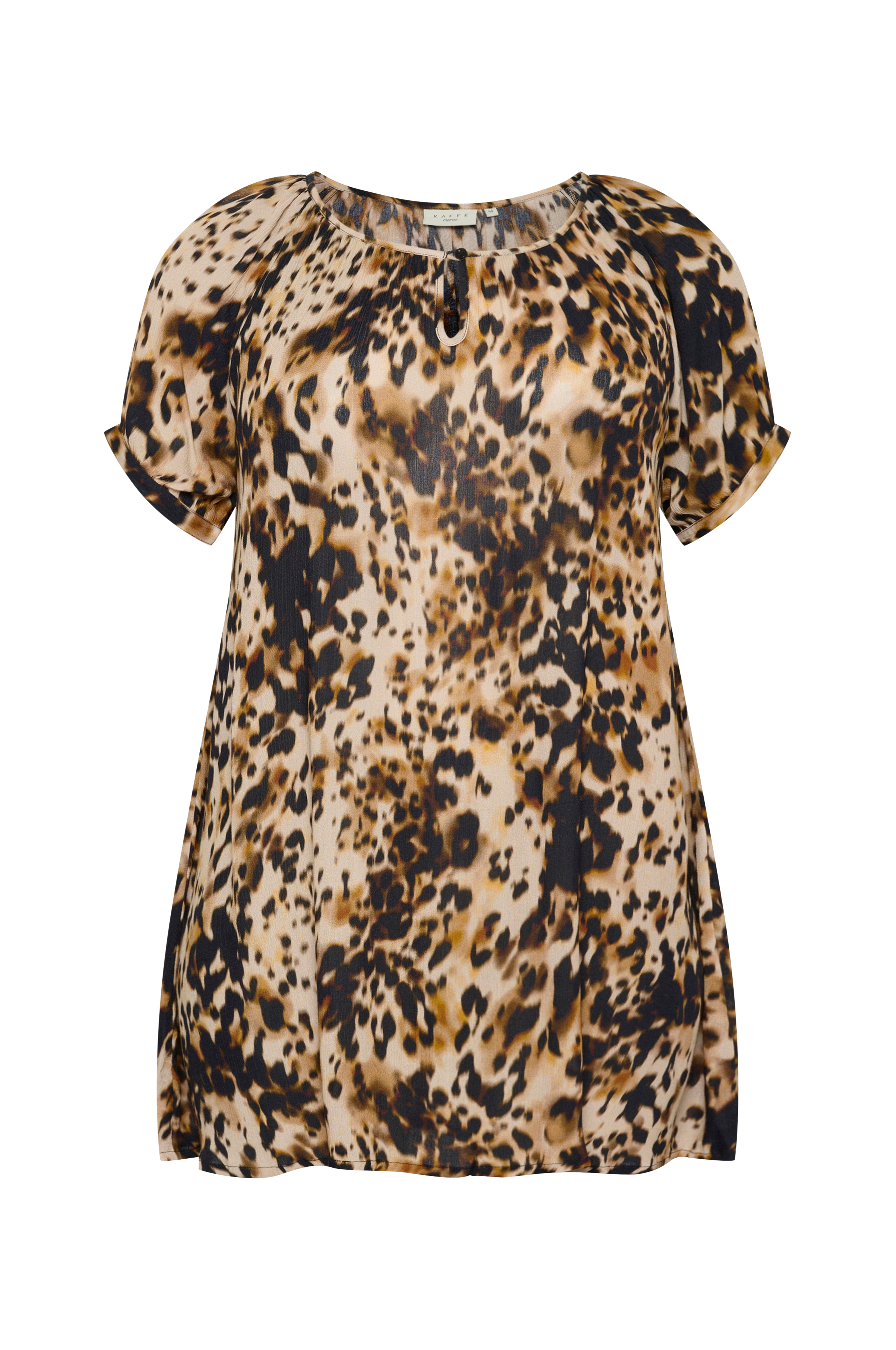 • Store størrelser• Model med svaj• Bred halsudskæring med samling og knap midt foran• Kort raglanærme med tynd manchet• Længde: 91 cm i størrelse 44