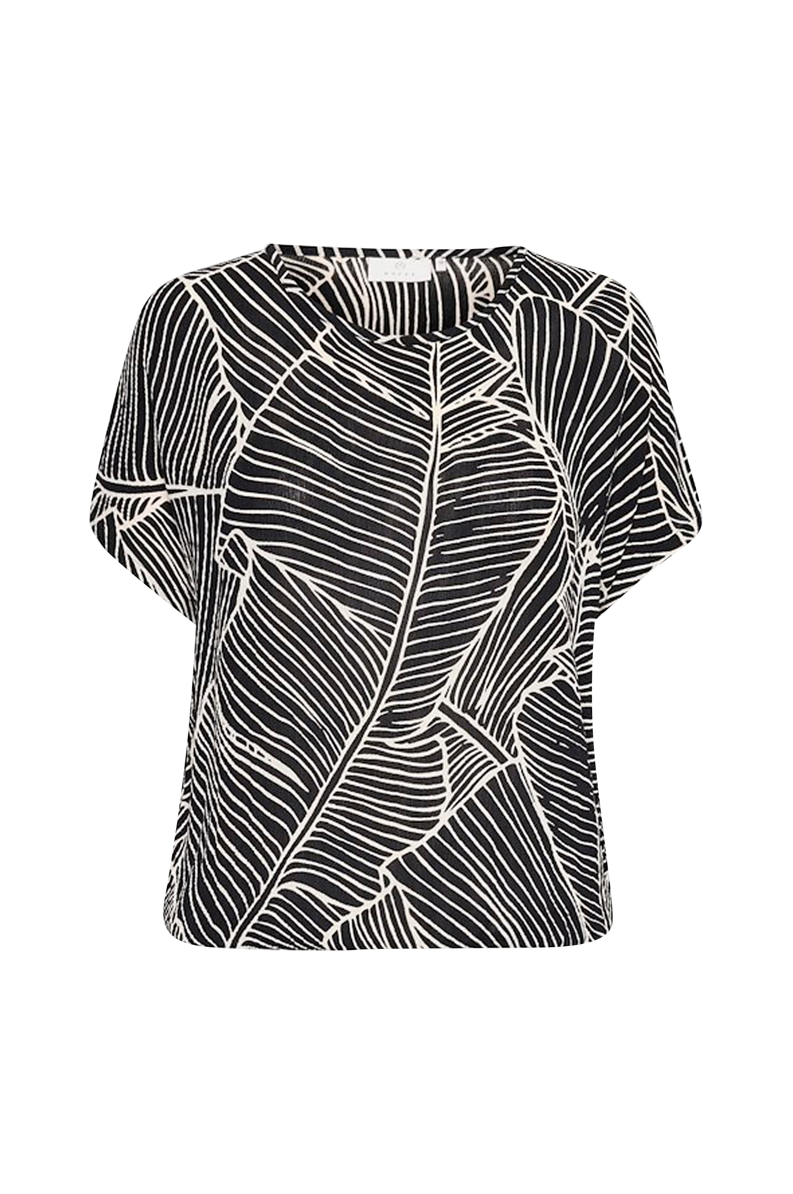 • Mønstret bluse i viskose• Rund halsudskæring• Kort ærme• Elastik ved nederste kant
