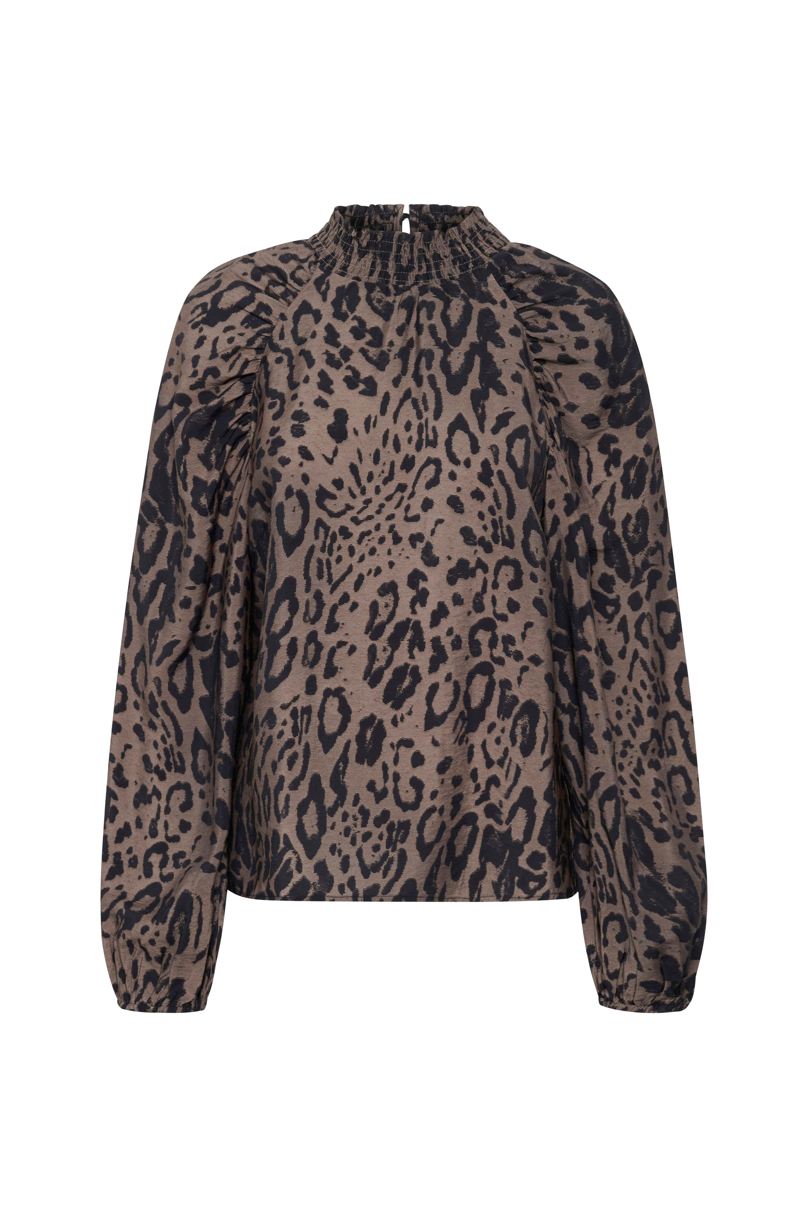 • Mønstret bluse i viskoseblanding• Løst A-linje design• Rund, smocket halsudskæring• Lange ærmer med elastik ved manchetterne