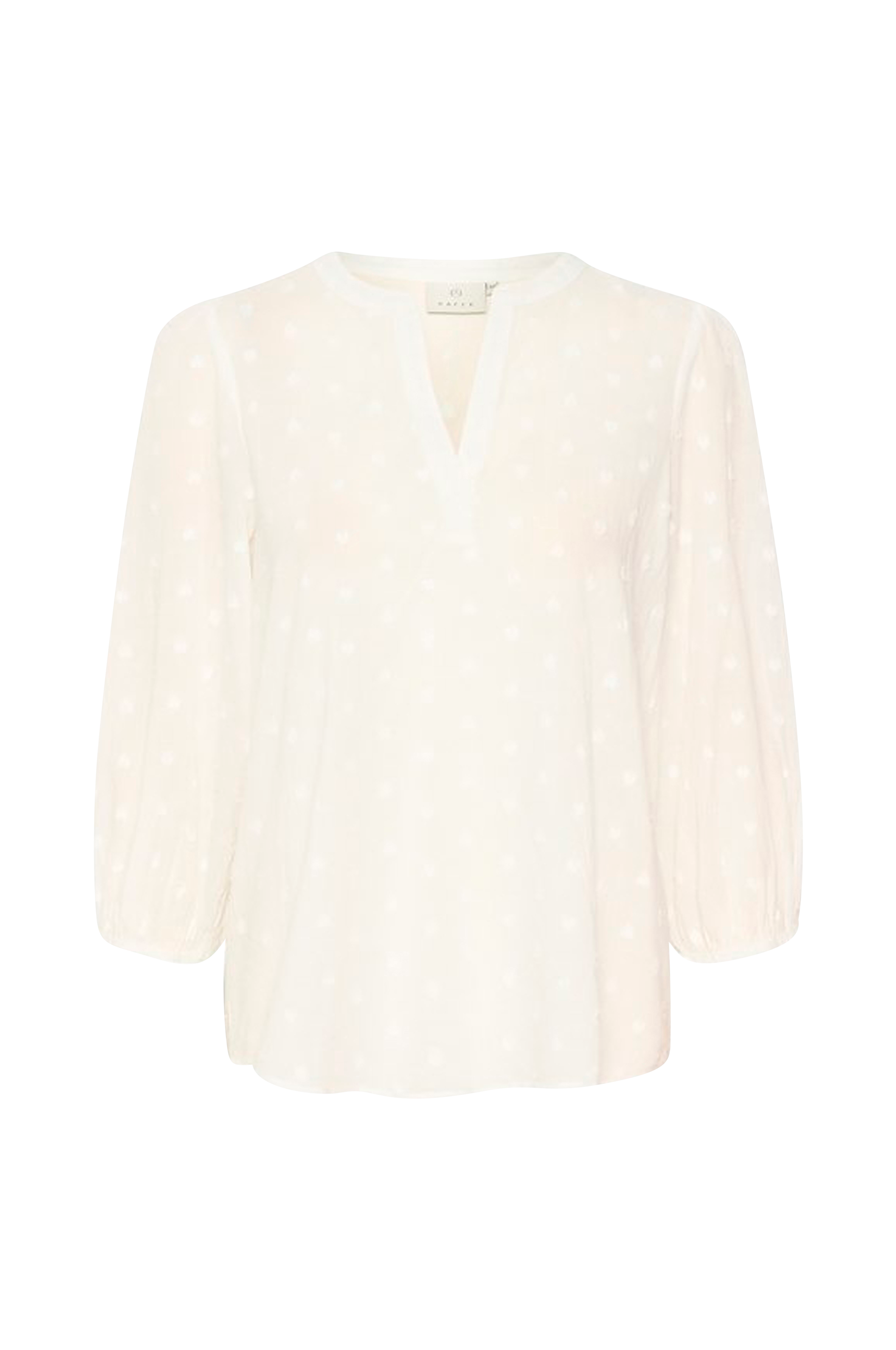 • Bluse i bomuld• V-udskæring foran• 3/4 lange ærmer med elastisk bånd ved manchetterne