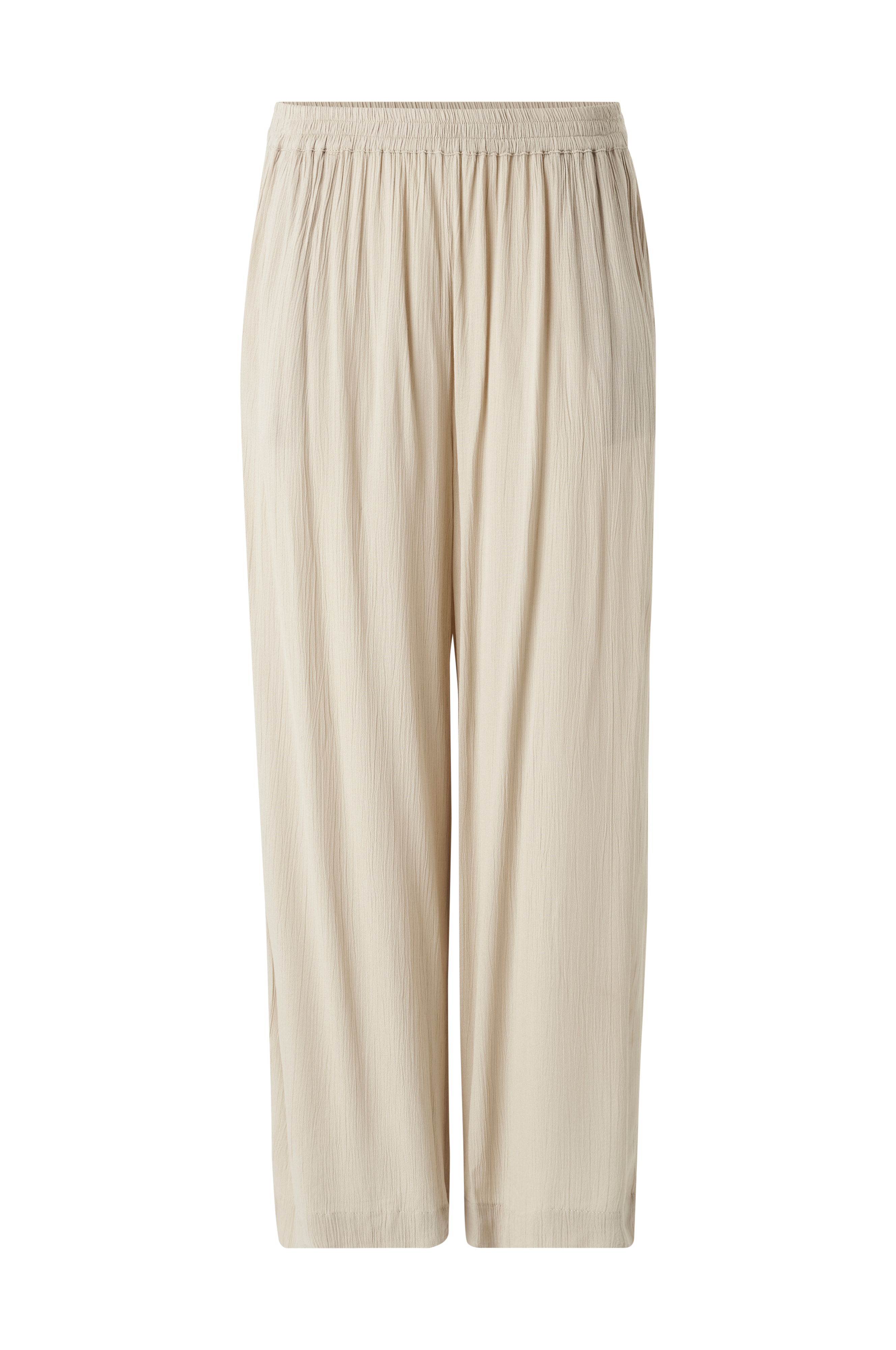 • Bukser i viskose• Rynket kvalitet• Ankellængde• Løs pasform• Brede ben• Elastisk talje• Sidelommer• Indre benlængde: 64 cm i størrelse 36