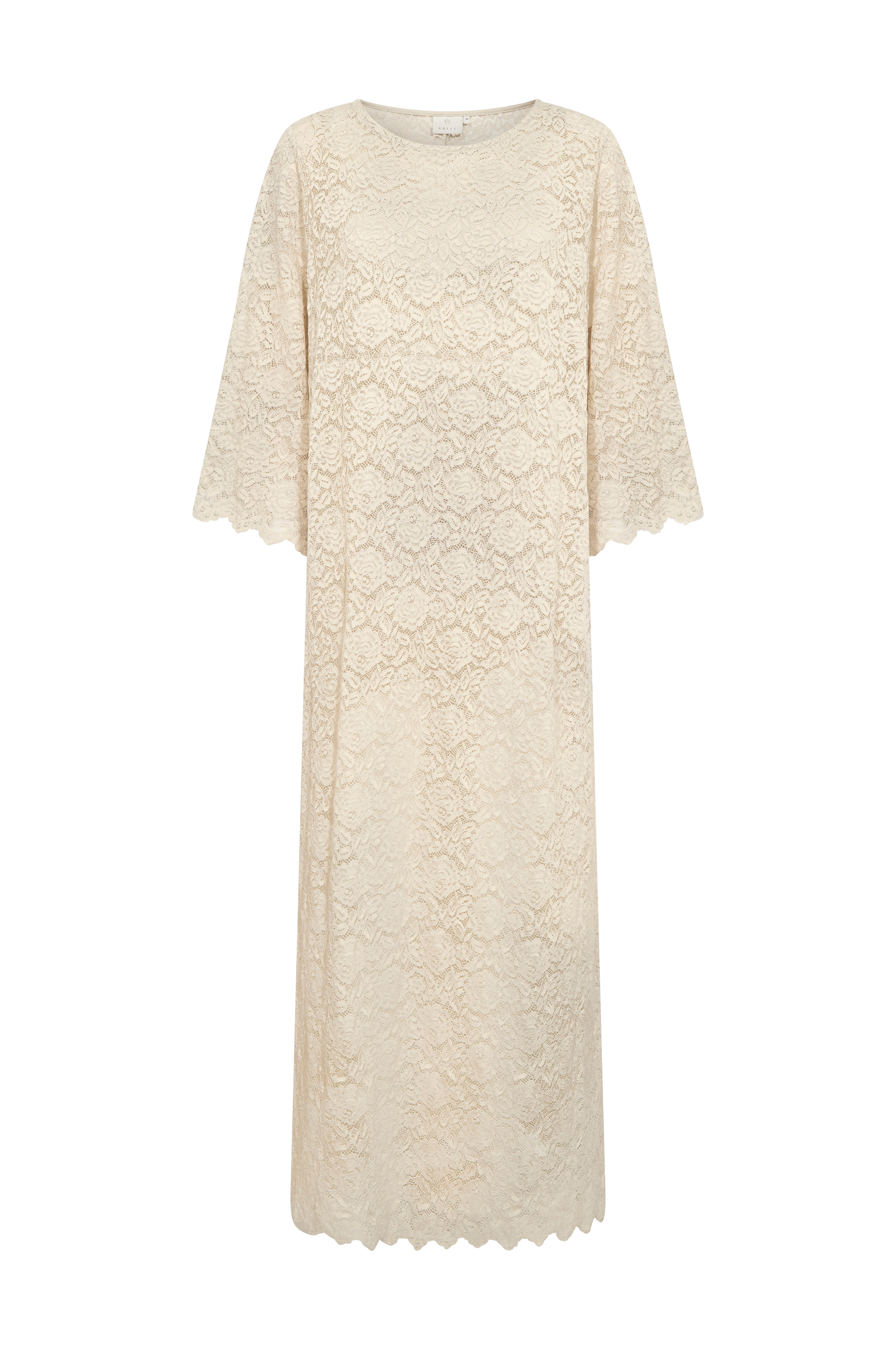 • Lige model i blonde• Rund hals• Bredt, 3/4 langt ærme med svaj• Bølgede kanter• Udtagelig underkjole med tynde, justérbare skulderstropper• Længde: 133 cm i størrelse S