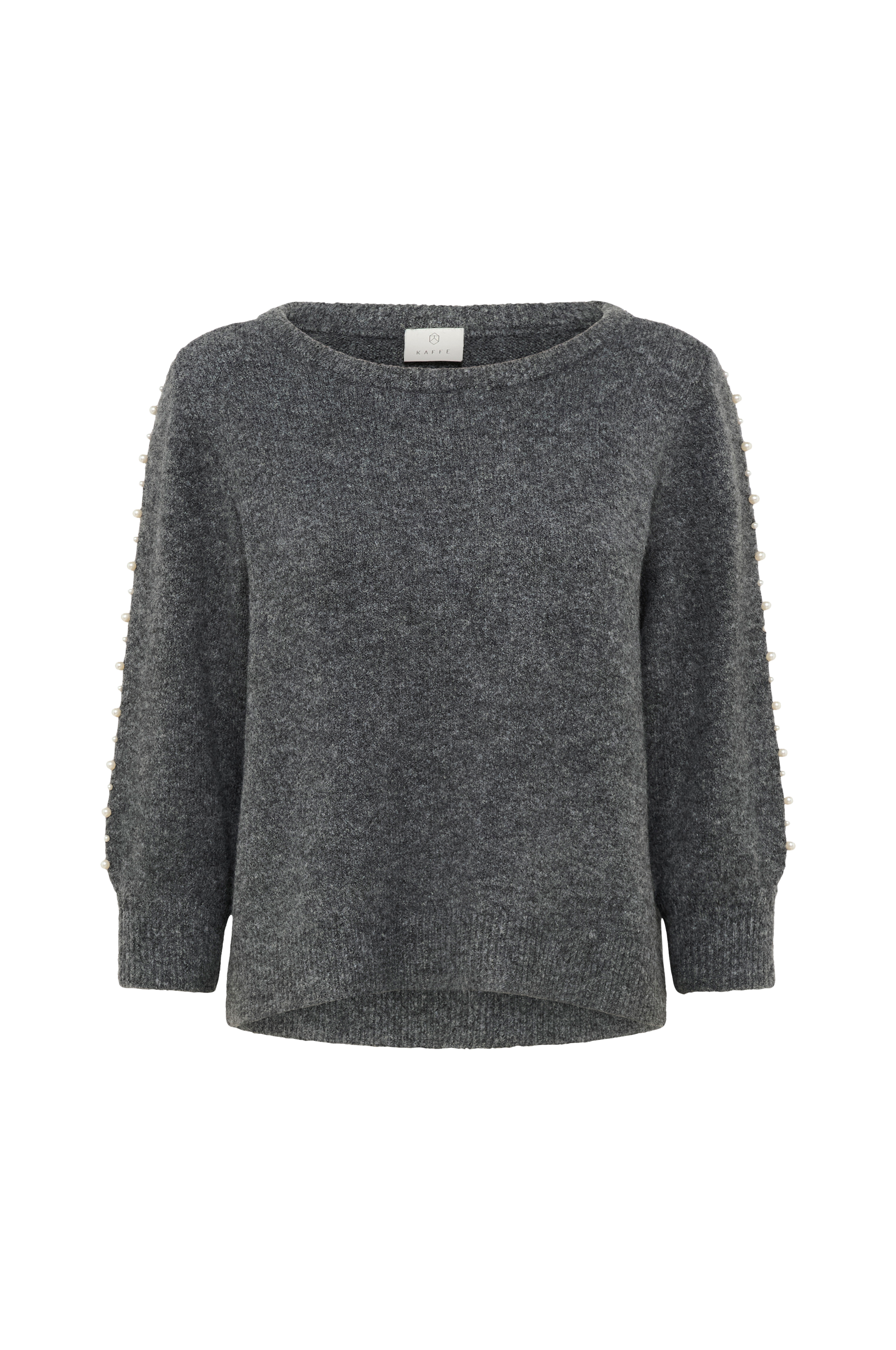 • Fintstrikket Pullover med rund, ribbet halsudskæring• Halvlange ærmer med dekorative perler ved siden af• Ribstrik ved manchetterne og nederst