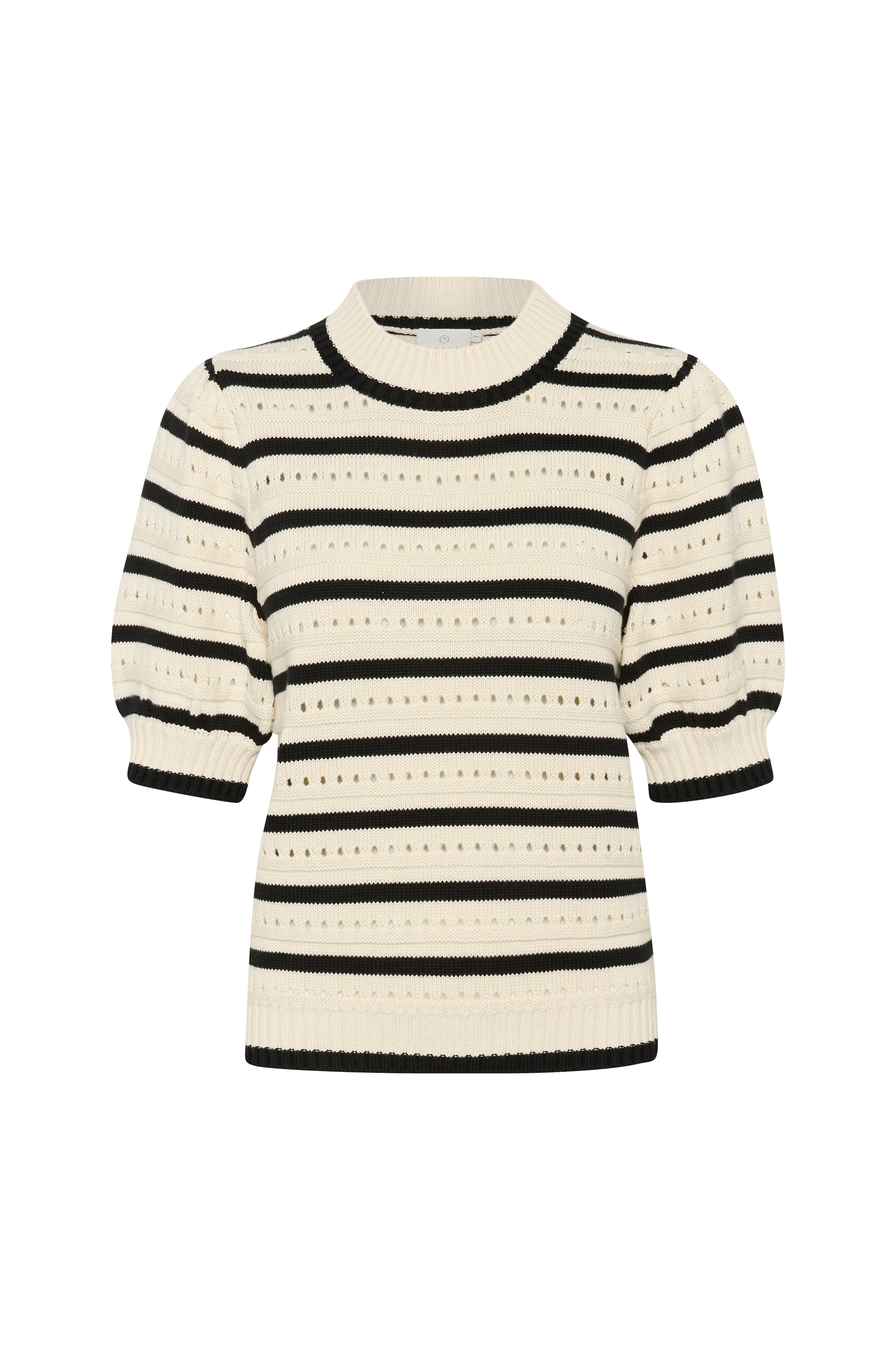 • Mønsterstrikket trøje med hulmønster• Rund, ribbet halsudskæring• Korte ærmer med ribbede kanter ved manchetterne• Ribbet søm