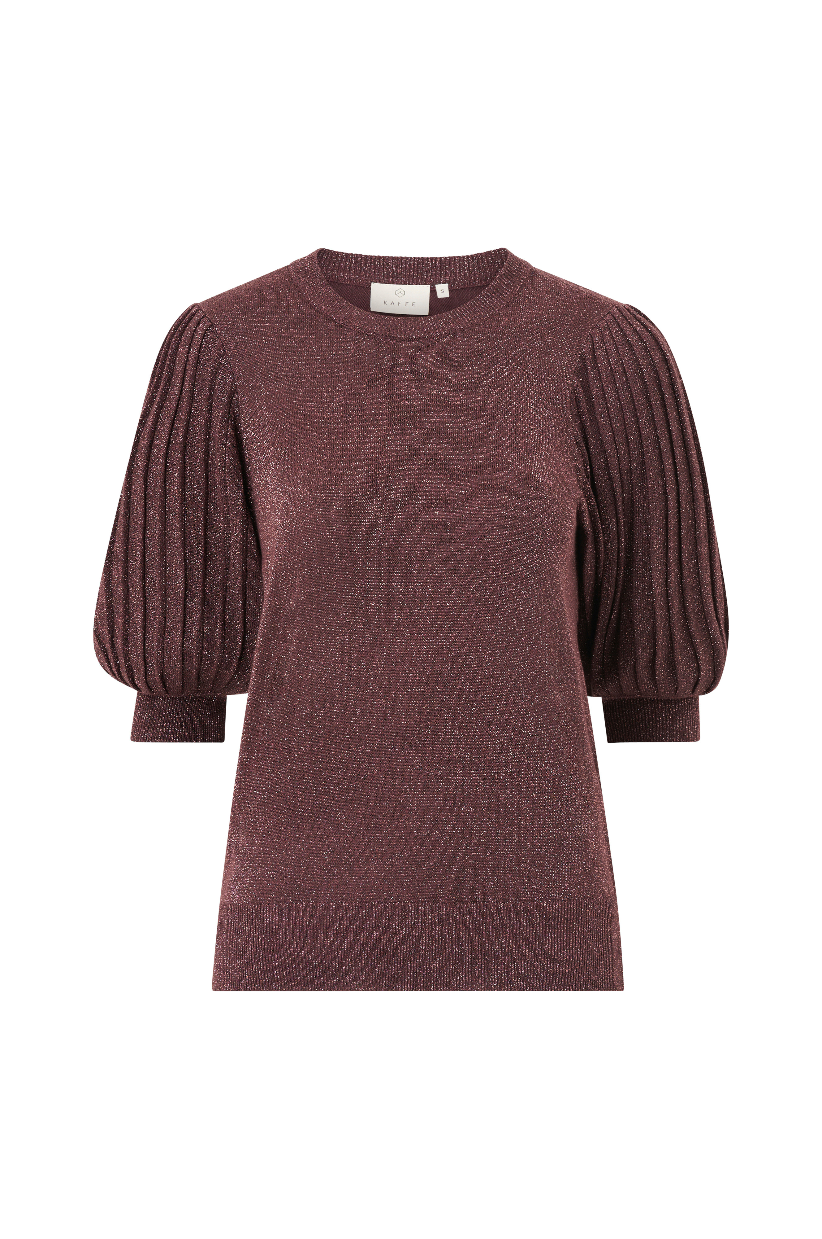 • Glitrende, fintstrikket Pullover med rund, ribbet halsudskæring• Korte pufærmer med bølgeformede detaljer• Ribkanter ved ærmeafslutningerne og nederst
