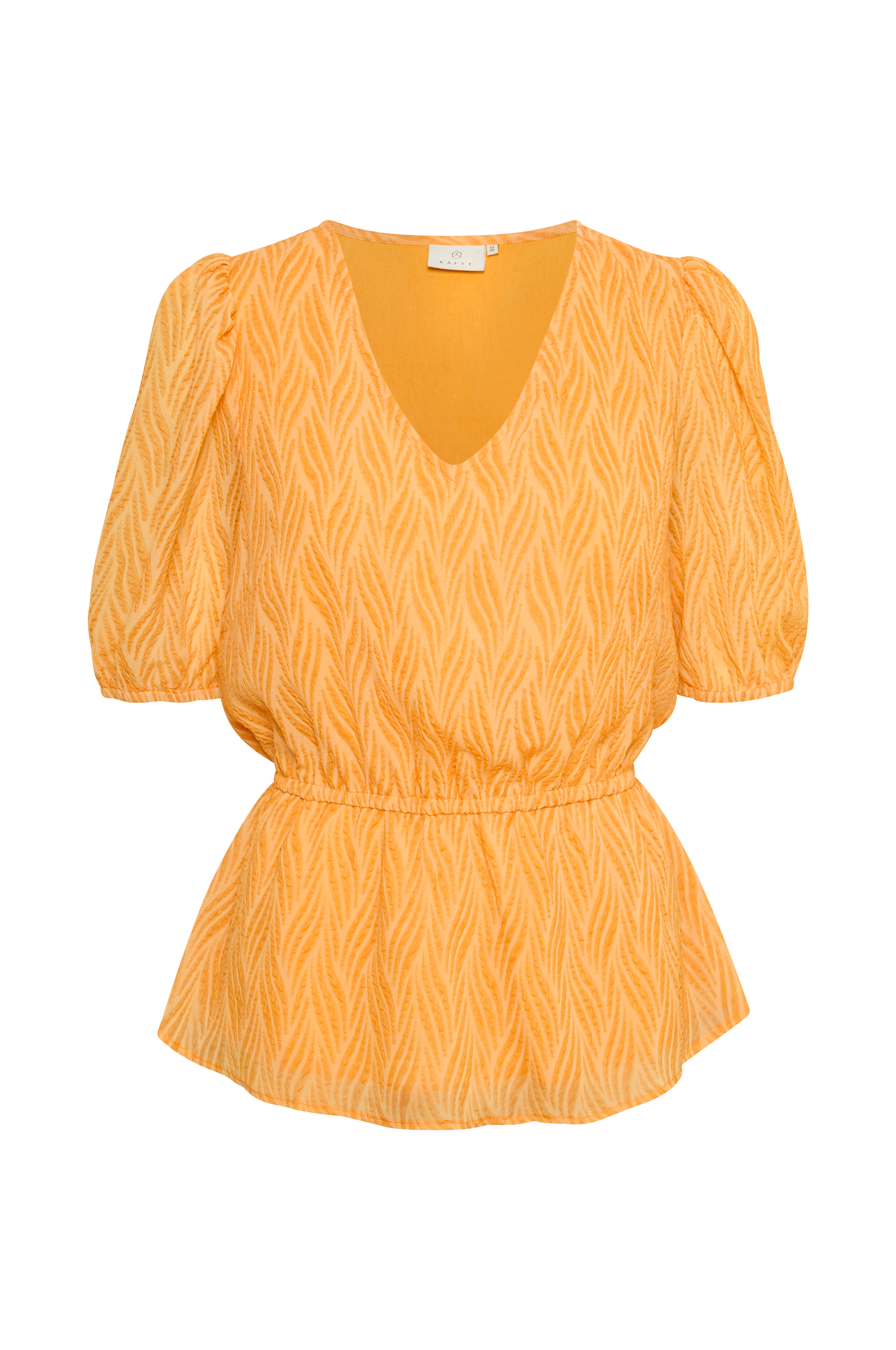 • Figurformede, mønstervævet model• V-formet halsudskæring• Ballonærme med elastisk manchet• Elastisk bånd ved taljen• Foret