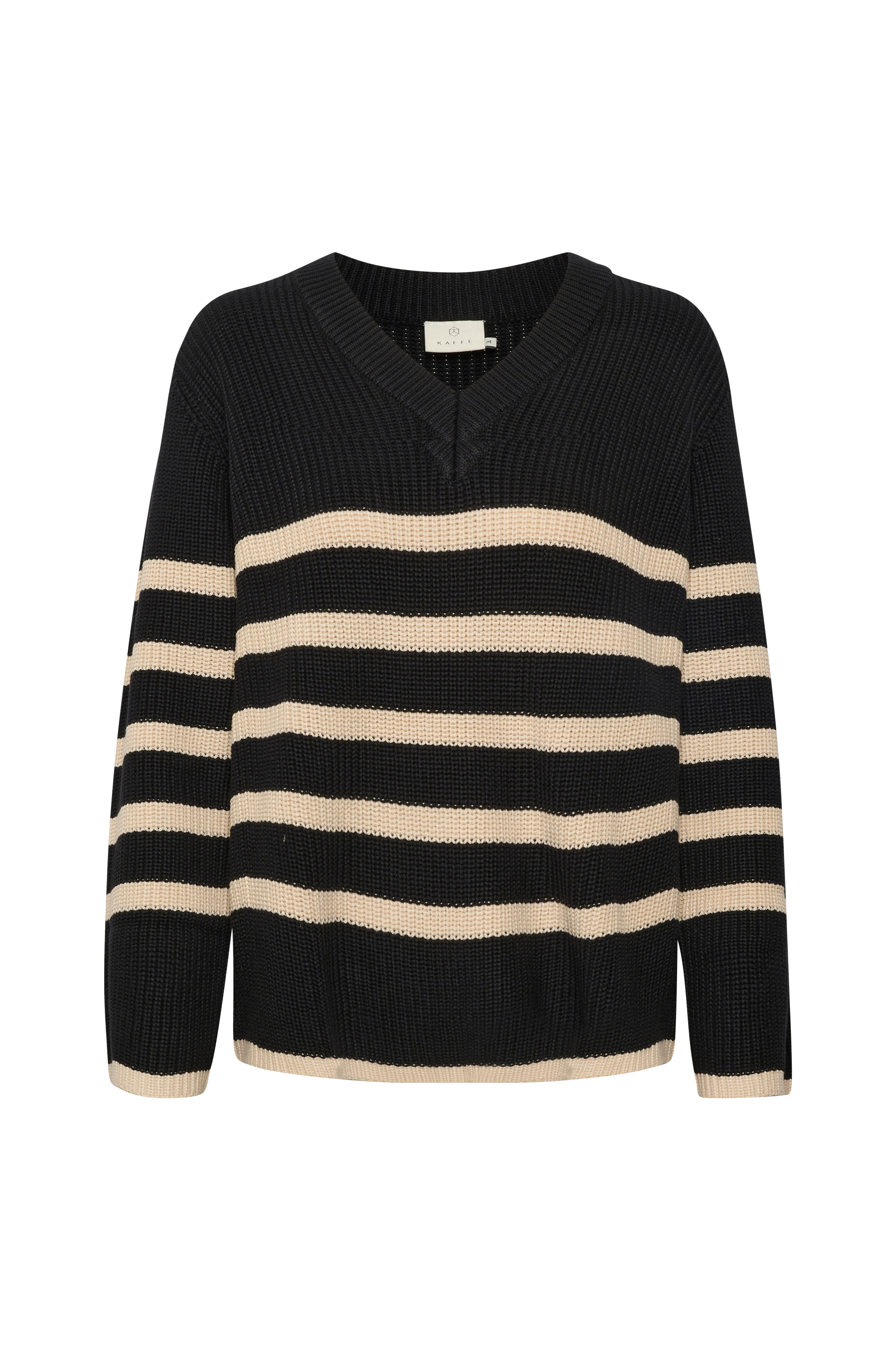 • Strikket trøje• V-formet halsudskæring med ribbet kant• Nedsænkede skuldre