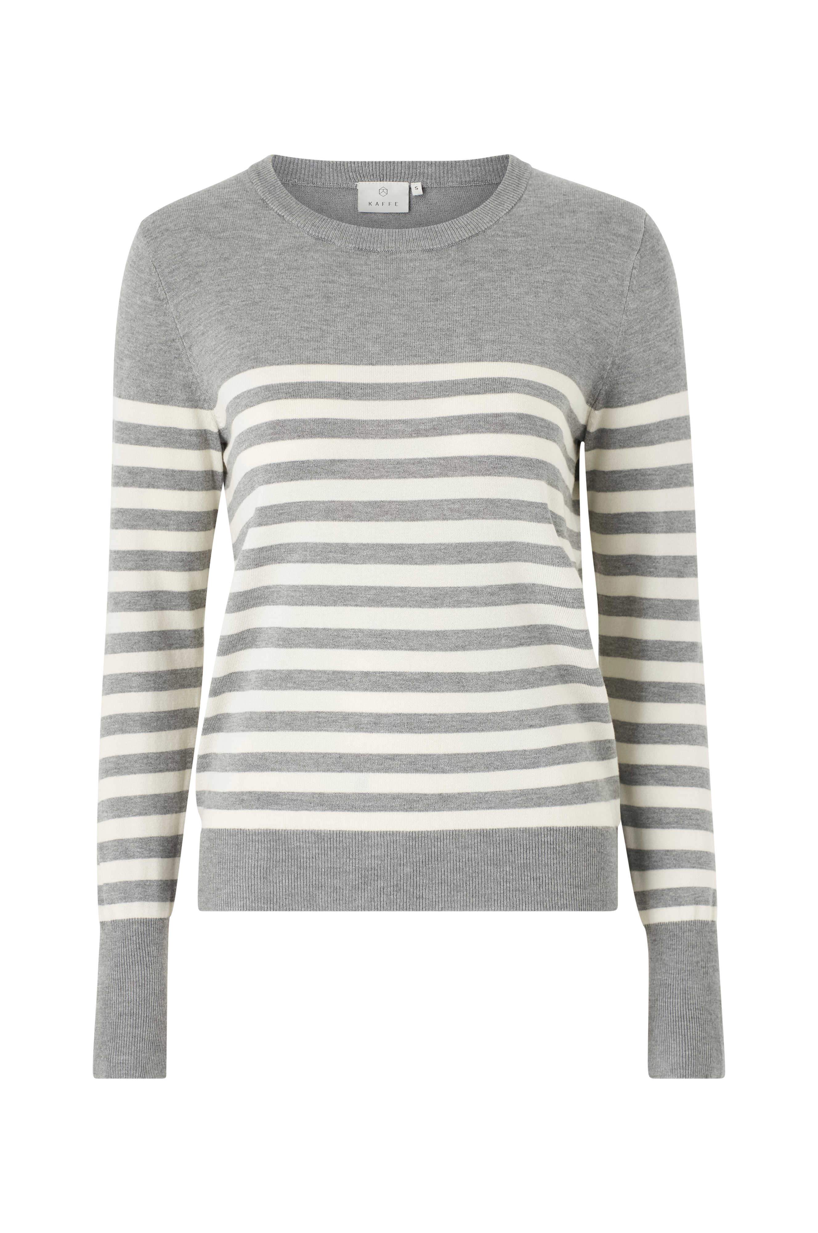 • Fintstrikket trøje• Rund, ribbet halsudskæring• Ribmanchetter ved manchetterne og nederst