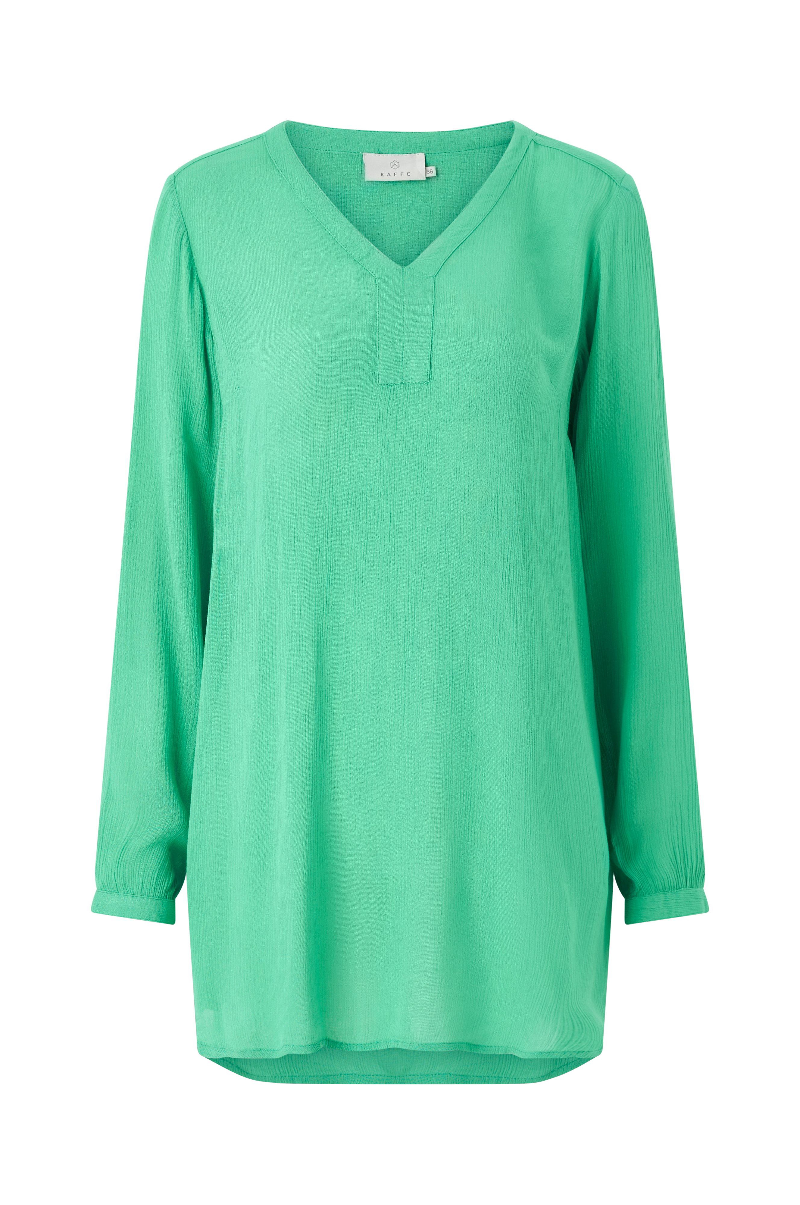 • Lige model i crepe• V-formet halsudskæring• Langt ærme med tynd manchet• Let afrundet søm