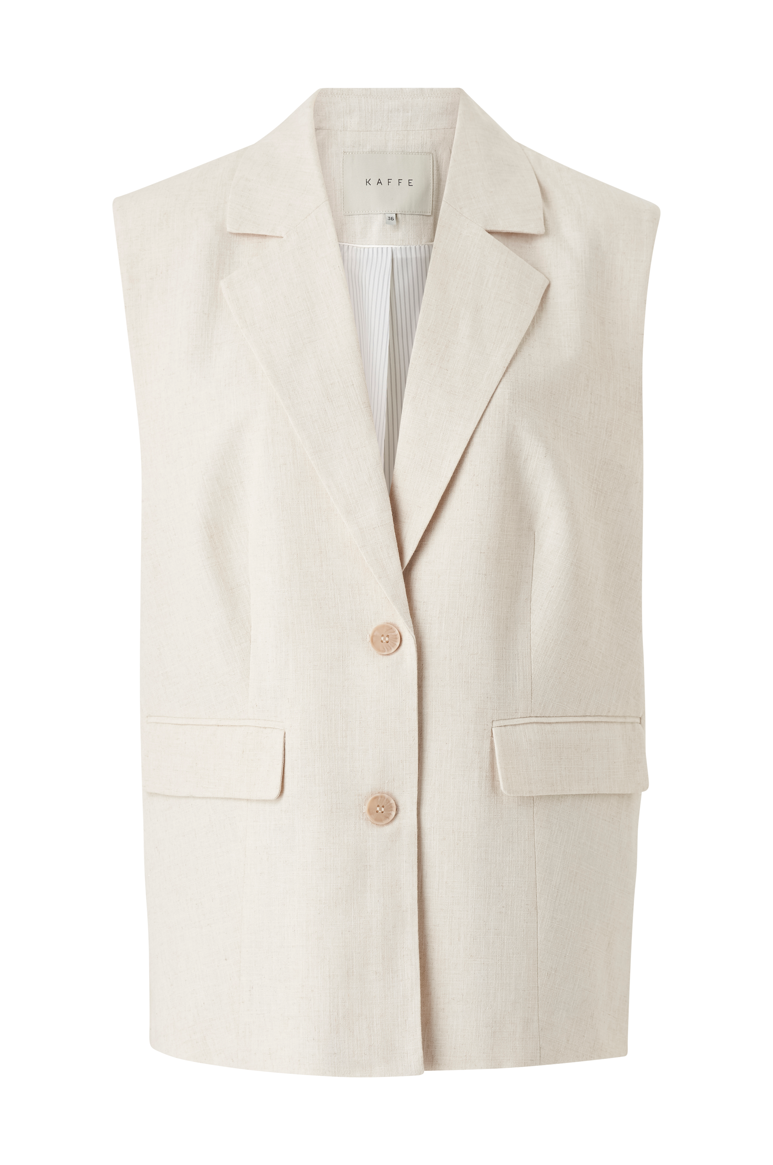 • Ærmeløs habitjakke i hørblanding• Løs pasform• Krave med revers• Knapper foran• Lommer foran• Stribet for