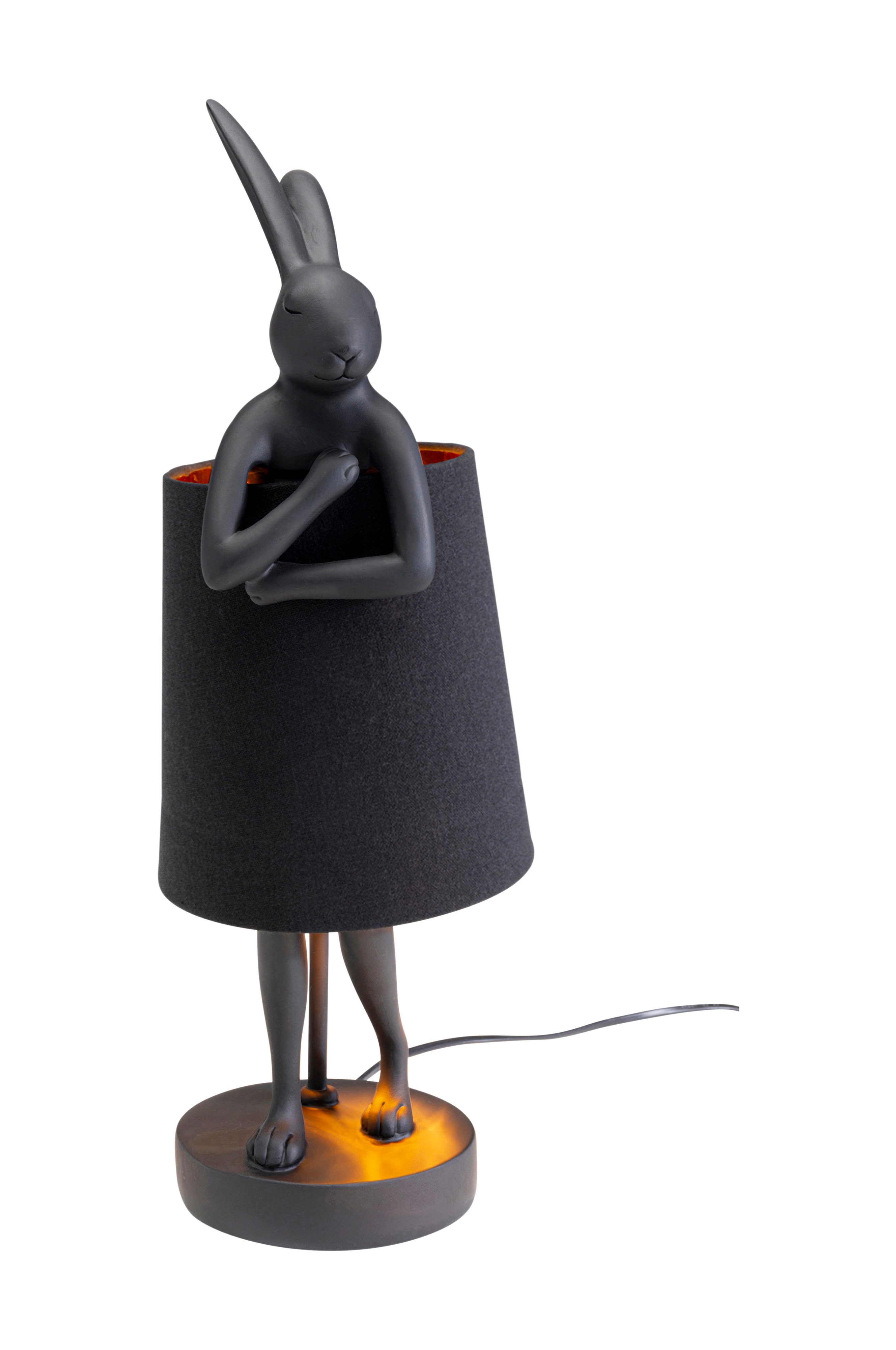 Med denne bordlampe på 50 x 17 x 20 cm (hxbxd) kan du skabe helt særlige højdepunkter i din stue eller dit soveværelse. Den dekorative guldfarvede kaninfigur af kunststen og den hvide skærm gør denne lampe til et ægte designerstykke.