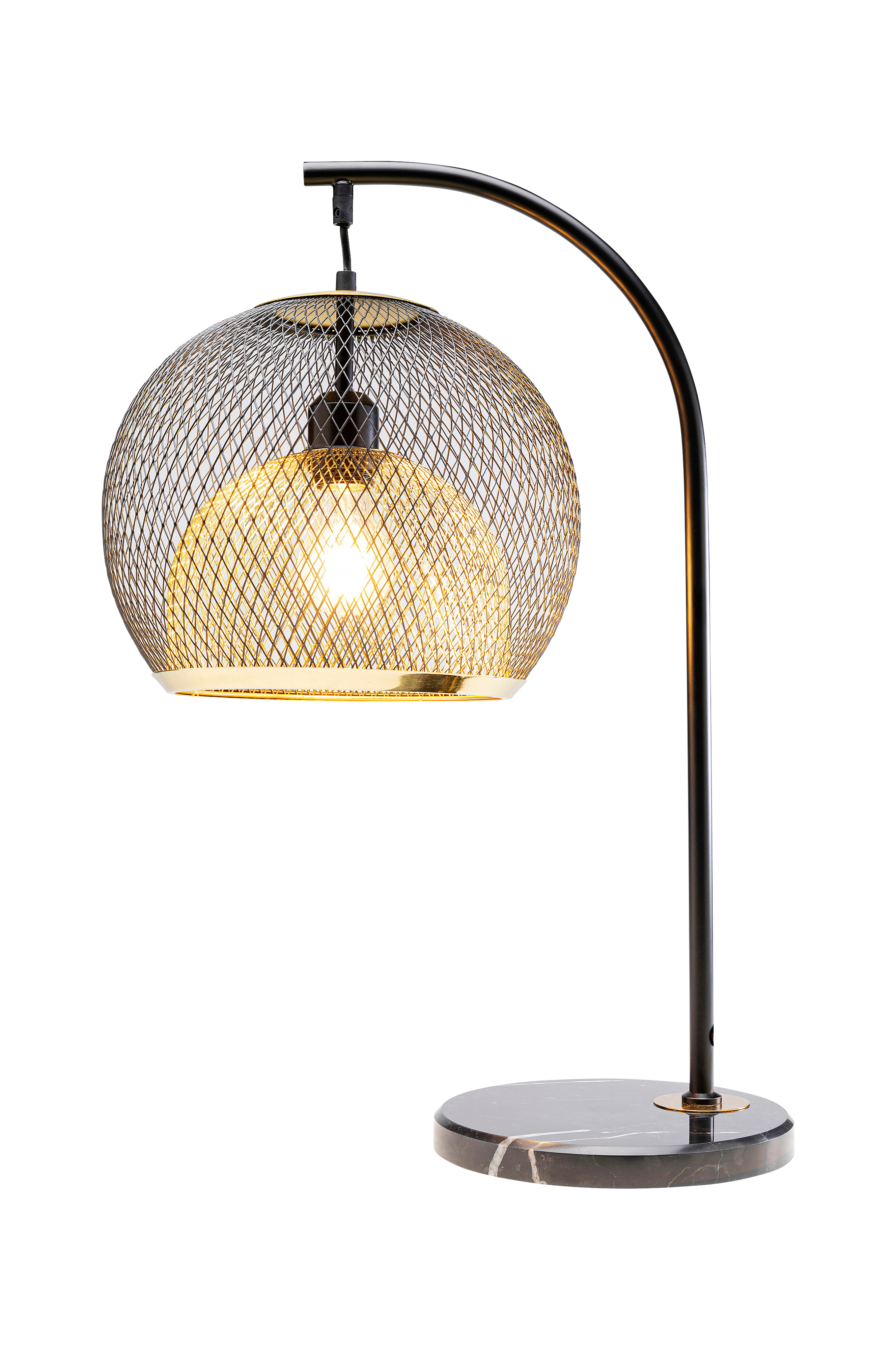 Denne designerlampe fascinerer med sin rene sofistikation. Den kugleformede skærm består af en trådnetstruktur i sort og messing. Materialerne af høj kvalitet sikrer, at du vil have glæde af denne sorte lampe i lang tid. Lige til at sprede stemningsbelysning ved siden af sengen.