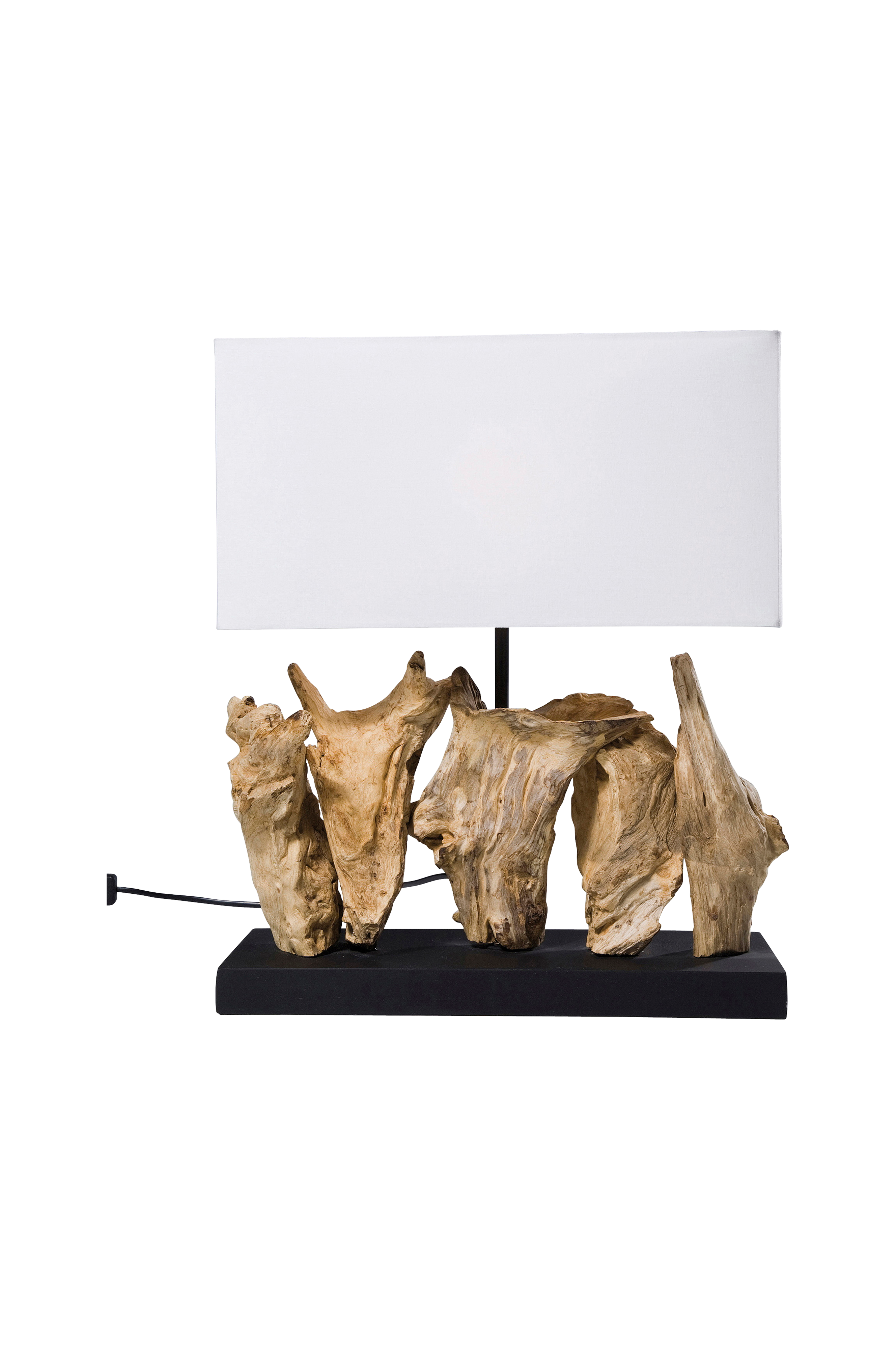 Indonesisk drivtømmer formet af havet giver denne bordlampe sin charmerende udstråling. Hver lampe er unik. Naturligt dyrket træ på en solid base.