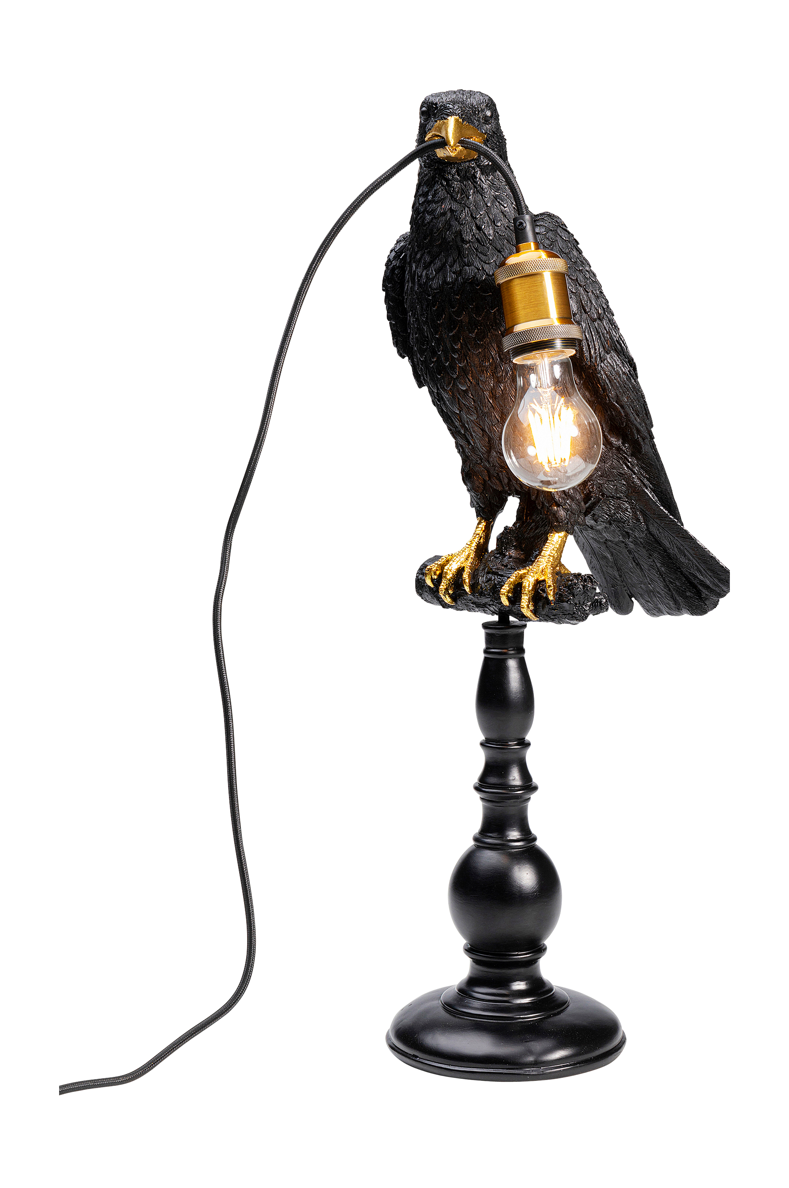 Foruden læselamper og indirekte belysning spiller stemningsbelysning en afgørende rolle for at give rummet en hyggelig atmosfære. Små og mellemstore bordlamper er den perfekte løsning. De skaber hyggelige øer med skøn stemning og oplyser mørke hjørner på bedste vis. Præcis som denne sorte, matte bordlampe, der bliver et blikfang med sit humoristiske design.