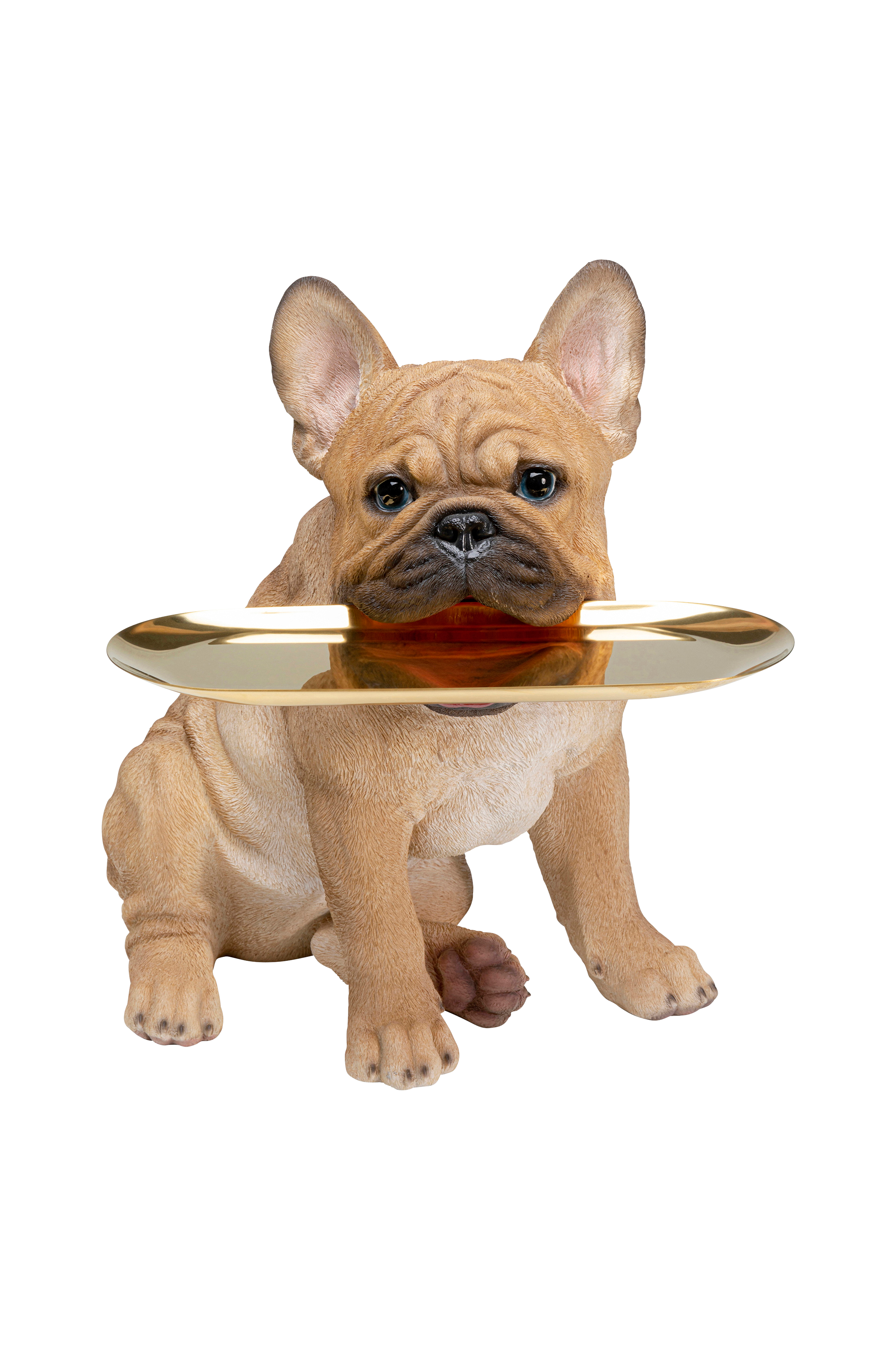 Denne franske bulldog er altid til din tjeneste og med sine udtryksfulde øjne skaber den orden på skrivebordet, i entreen eller på skænken i stuen. Den perfekte gave til hundeelskere eller dig selv. Fremstillet af metal og polyresin.