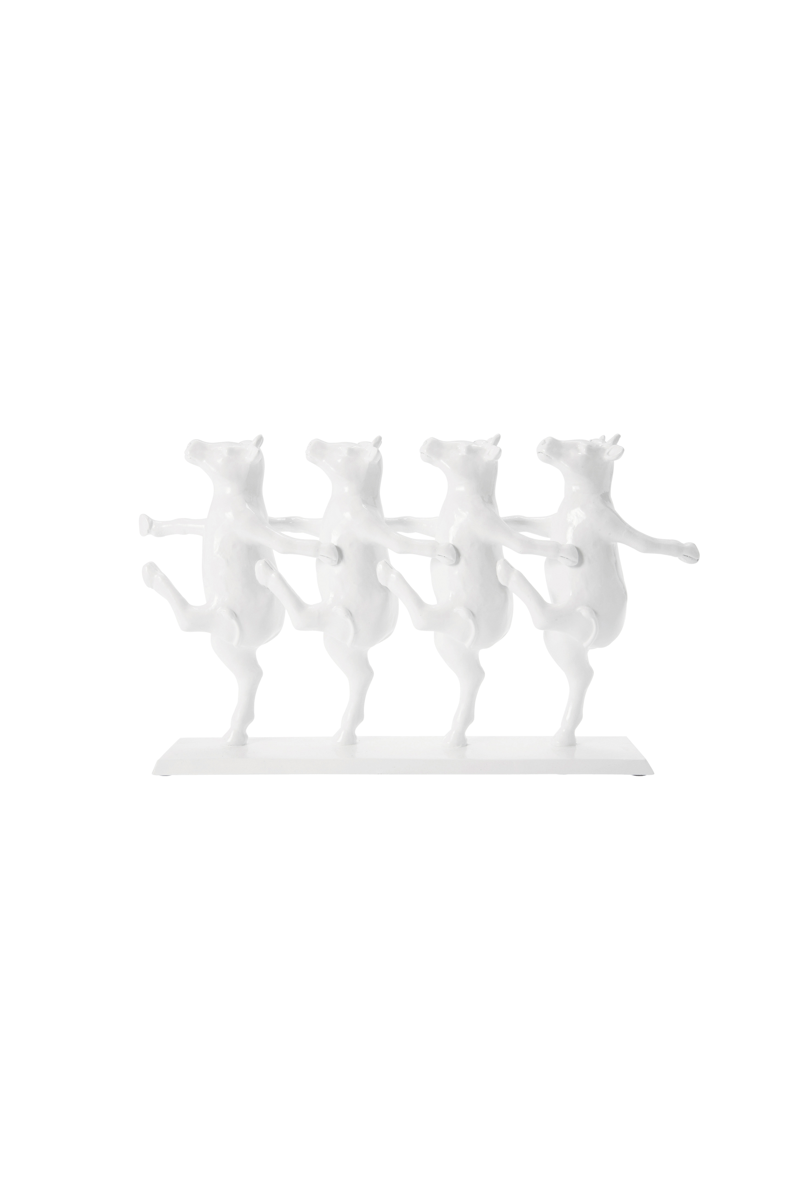 En skøn dans, der smitter - denne dekoration giver en konstant feststemning, de fire hvide køer danser glade på bordet og udstråler en livsglæde, der breder sig i rummet. En fin dekoration som garanteret smitter alle, der ser den, med sin glade energi. Dansende køer forestiller køer der danser på bordet, også når deres ejer er hjemme. Denne kvartet giver dit hjem et humoristisk element og giver indretningen en afslappet atmosfære, på en original måde.
