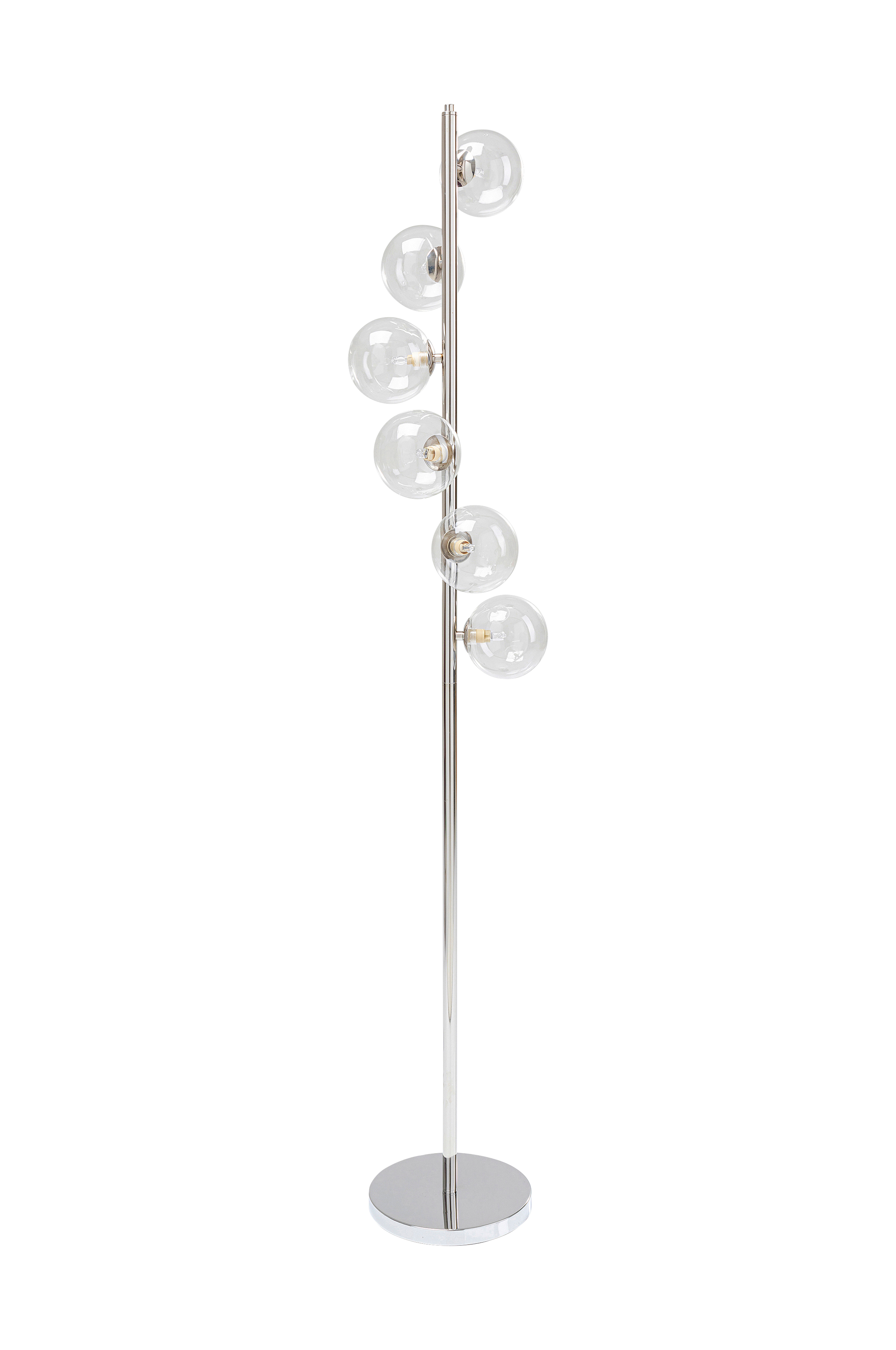 Denne kunstneriske lampe inspirerer fantasien - som store molekyler svæver lampskærmene af glas rundt om den lineære søjle, og alle kommer til at se noget unikt i denne usædvanlige lampe. Det betyder at det vigtigste designmål allerede er opfyldt: det må ikke være kedeligt! Og i dette tilfælde giver lampen tilmed et hyggeligt lys.