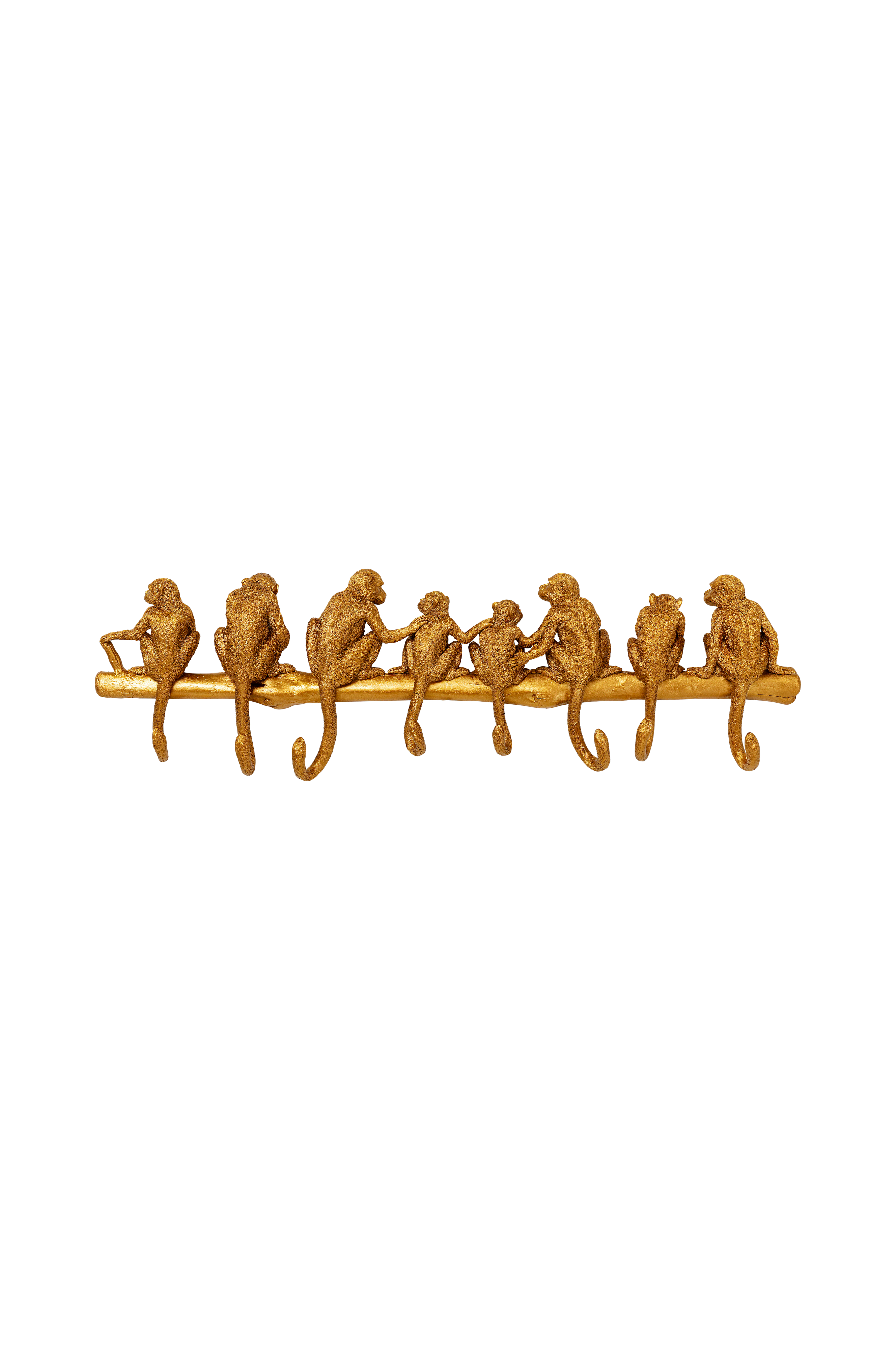 Aberne på grenen gør det sjovt at indrette: den stilrene knagerække fremtryller en eksotisk stil på enhver væg - uanset om det er i entreen, badeværelset eller soveværelset. Knagerækken er lavet med så flotte detaljer, at hver primat ser sjovere og mere livagtig ud end den næste. Hvilken af disse underholdende klatrekunstnere vil du overlade din jakke til i dag?