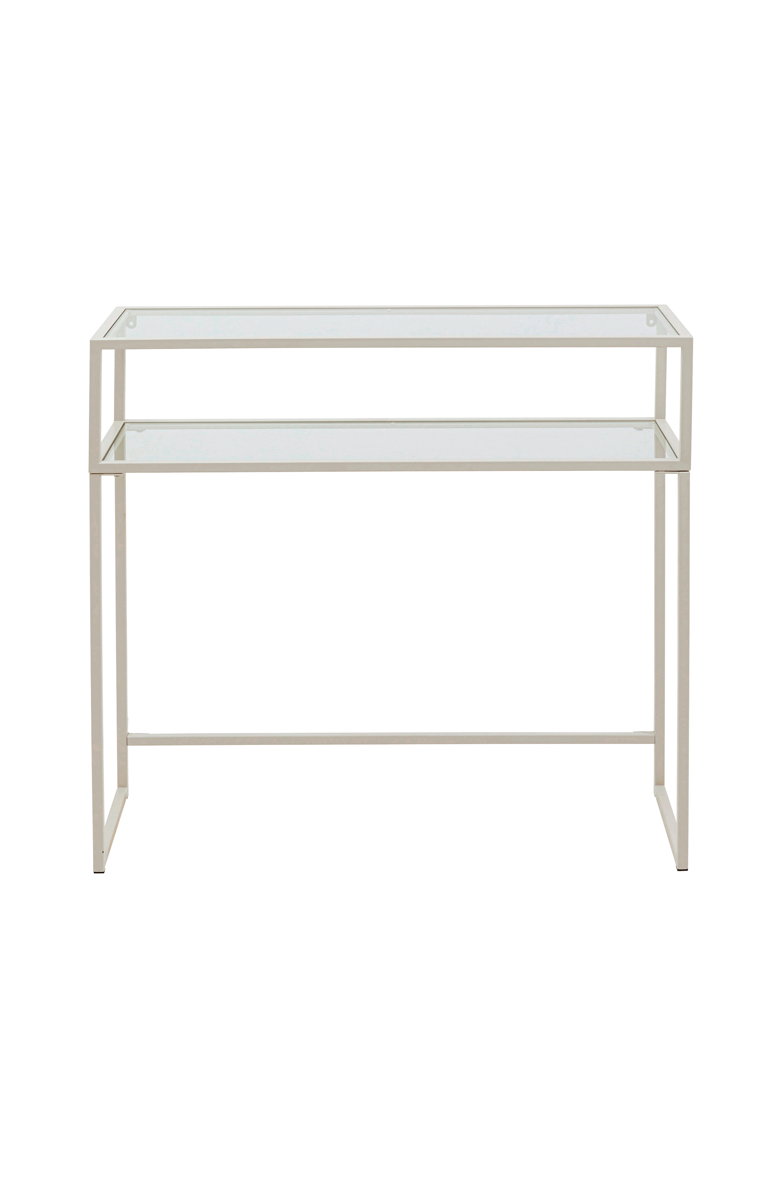 Denne konsol kombinerer filigran design med funktionel elegance. Materialeblandingen af stål og sikkerhedsglas skaber et moderne, luftigt look, der ubesværet passer ind i forskellige boligstile - fra minimalistisk til urban. Uanset om det er som en stilfuld hylde i gangen, en diskret organizer i soveværelset eller en elegant scene for dekorative højdepunkter i stuen - dens markante form gør den til det perfekte interiørstatement. Fritstående eller placeret på væggen bringer den struktur og lethed til ethvert rum.