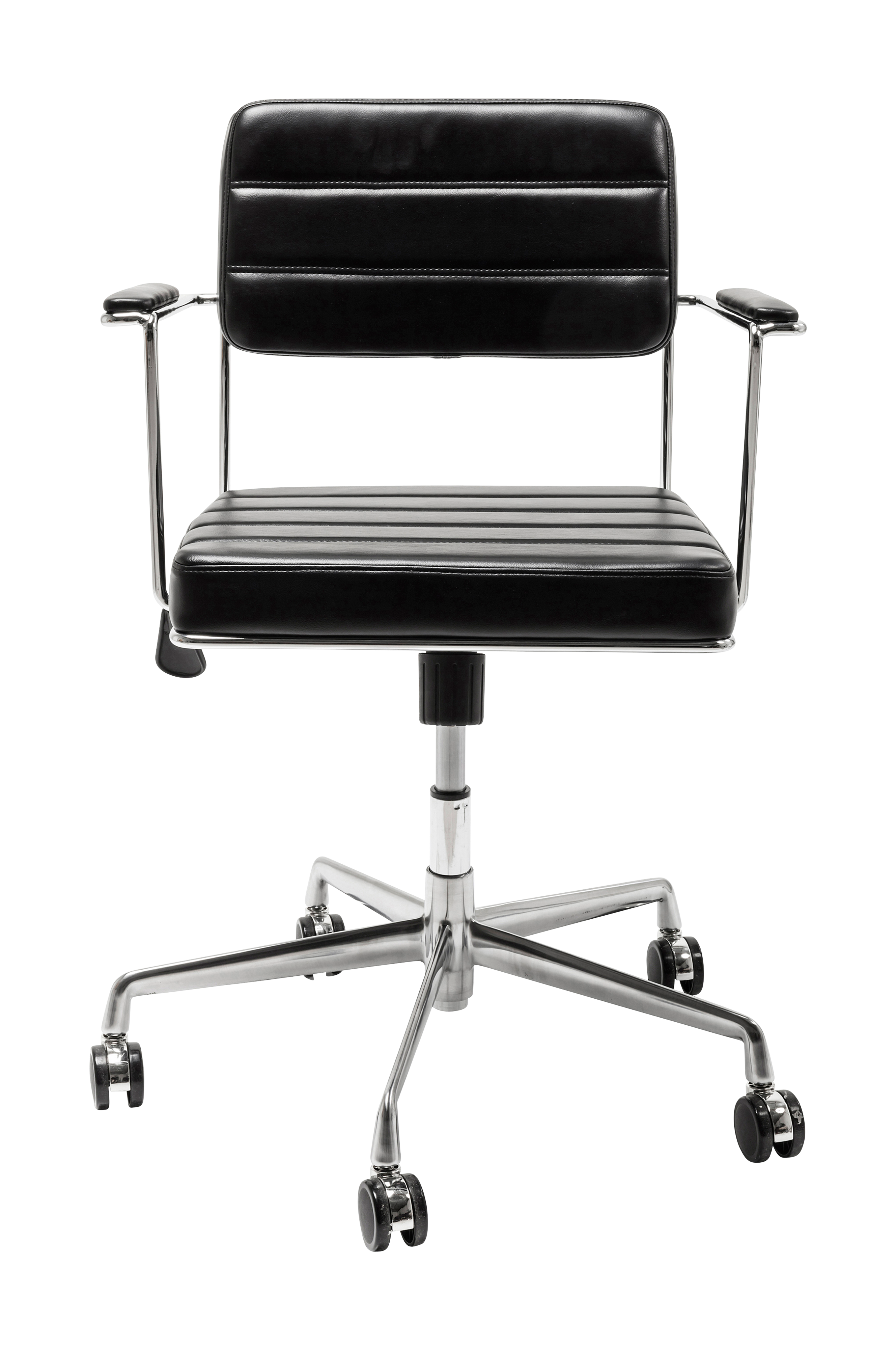 Når pladsen er knap på hjemmekontoret, er det bedste valg en visuelt luftig kontorstol. Denne drejestol ser enkel ud, men er stadig elegant og har en klassisk retrostil. Dreje- og vippefunktion og komfortable armlæn er vigtige for siddekomfort og ergonomi. Denne sorte kontorstol har alle disse funktioner. Yderligere en praktisk fordel: Betrækket har en belægning som gør materialet slidstærkt og let at rengøre - tør bare af med en fugtig klud. Leveres usamlet.