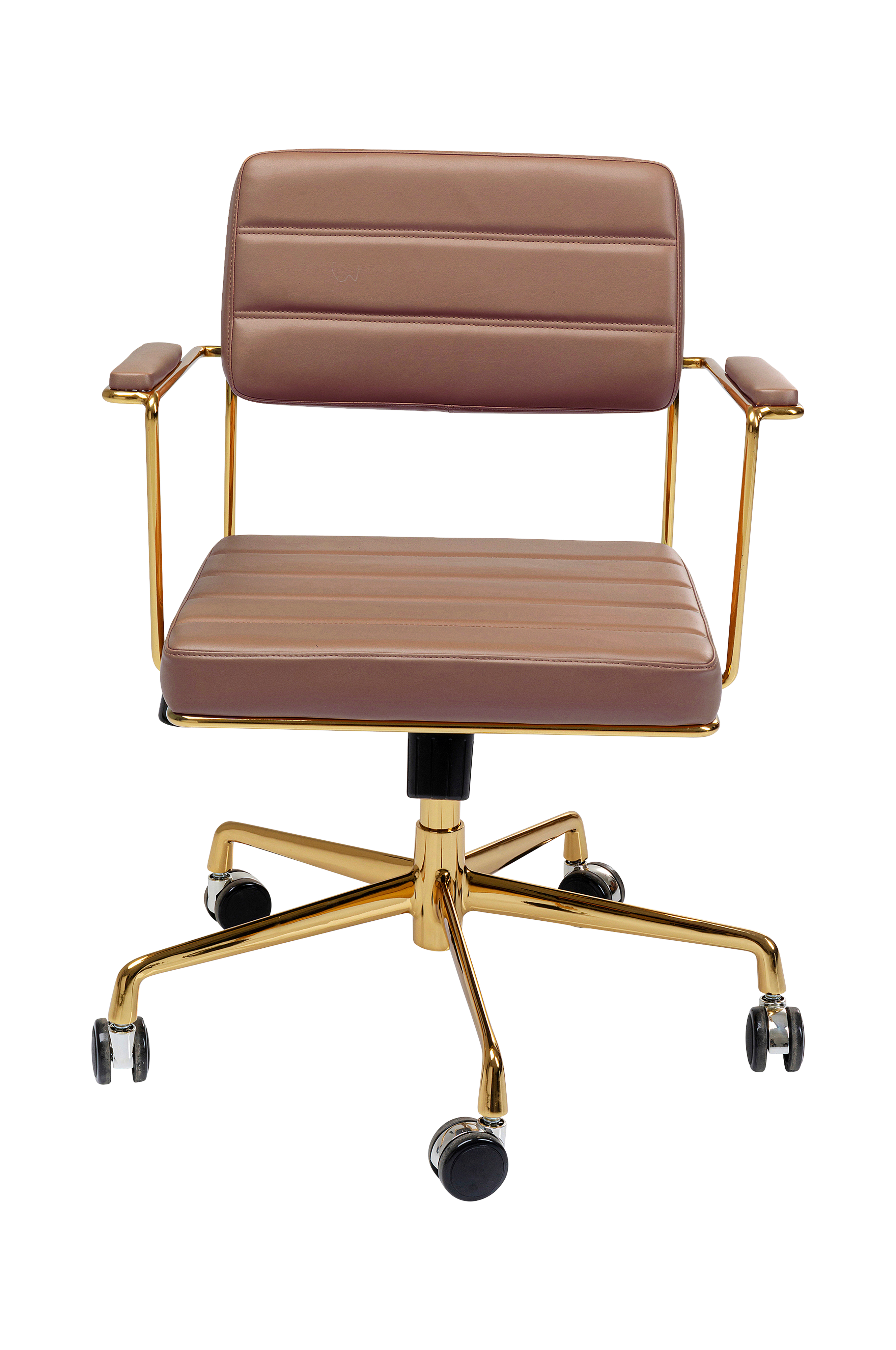 Når pladsen er knap på hjemmekontoret, er det bedste valg en visuelt luftig kontorstol. Denne drejestol ser enkel ud, men er stadig elegant og har en klassisk retrostil. Dreje- og vippefunktion og komfortable armlæn er vigtige for siddekomfort og ergonomi. Denne brune kontorstol har alle disse funktioner. Yderligere en praktisk fordel: Betrækket har en belægning som gør materialet slidstærkt og let at rengøre - tør bare af med en fugtig klud. Leveres usamlet.