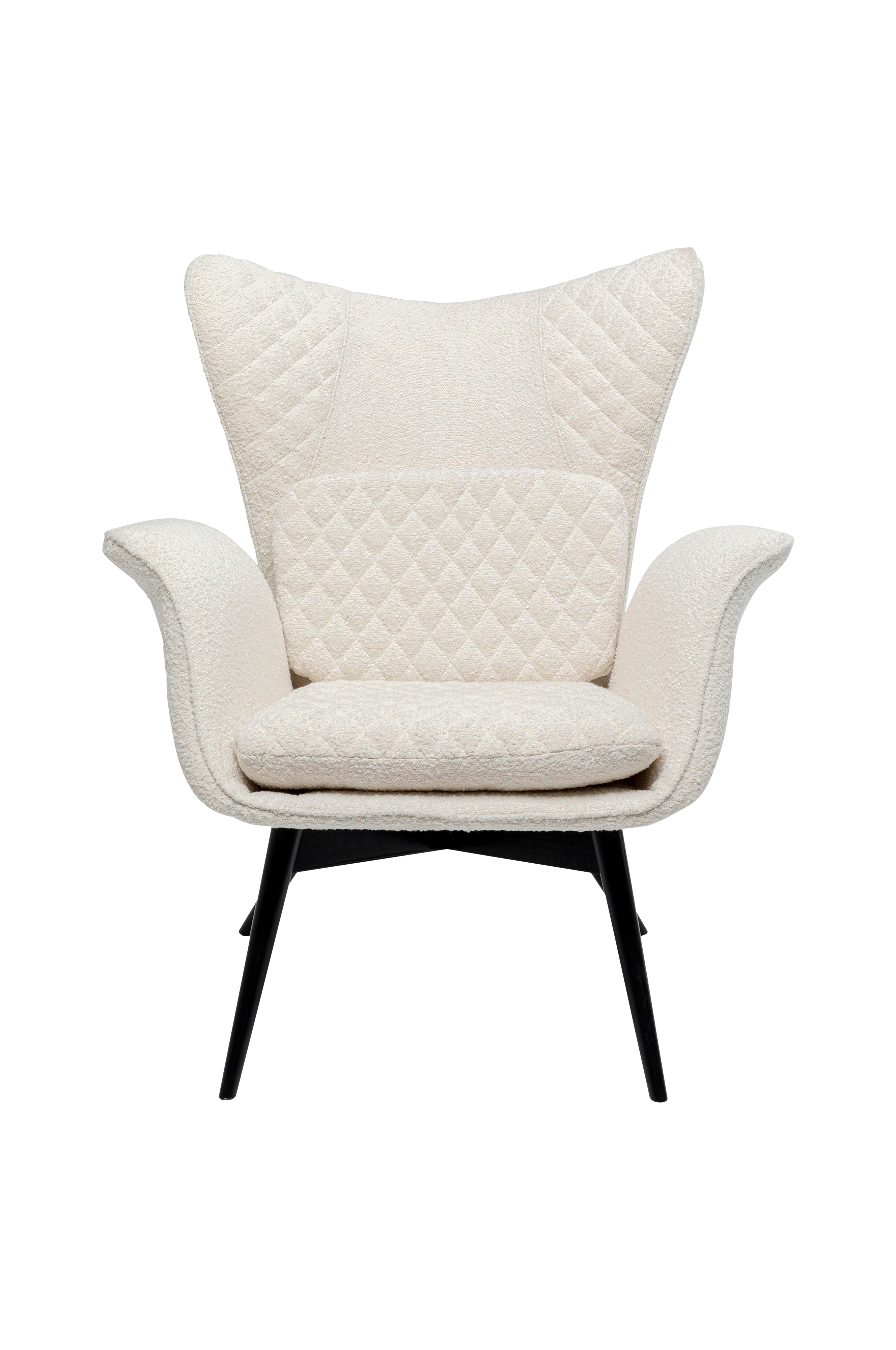Lænestol med højt ryglæn og quiltet søm. Stel af MDF, træ, polyester og stål.