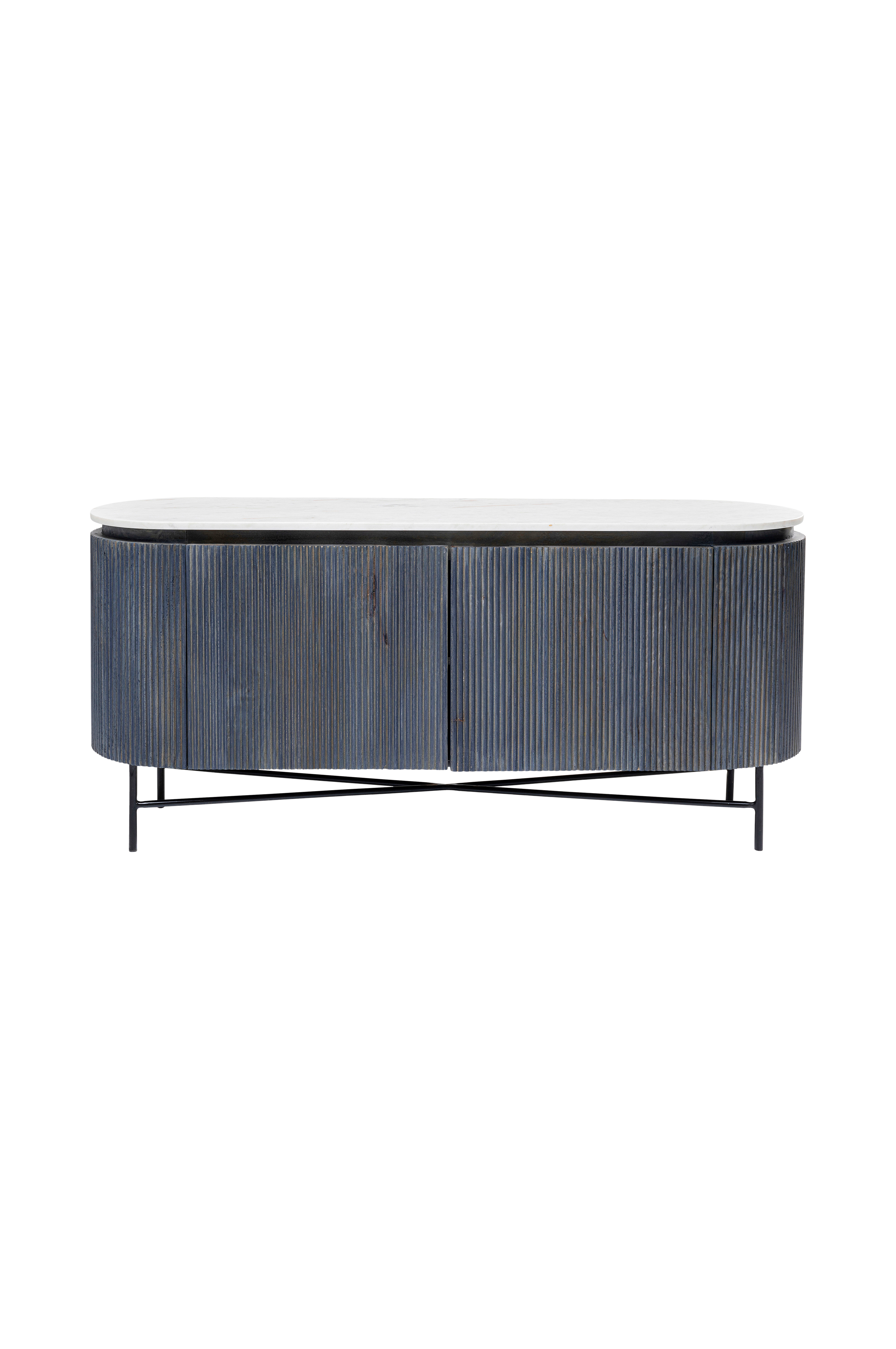 Elegant og specielt - denne skænk tilbyder mere. Formen: en flad, oval bordplade af lys, ægte marmor og et design, der skiller sig ud blandt skænke med mørkegrå fronter og sider af massivt mangotræ med ribbet struktur. MDF. Glenn udstråler diskret adel og tidløs elegance og imponerer med ædle materialer. Leveres samlet.