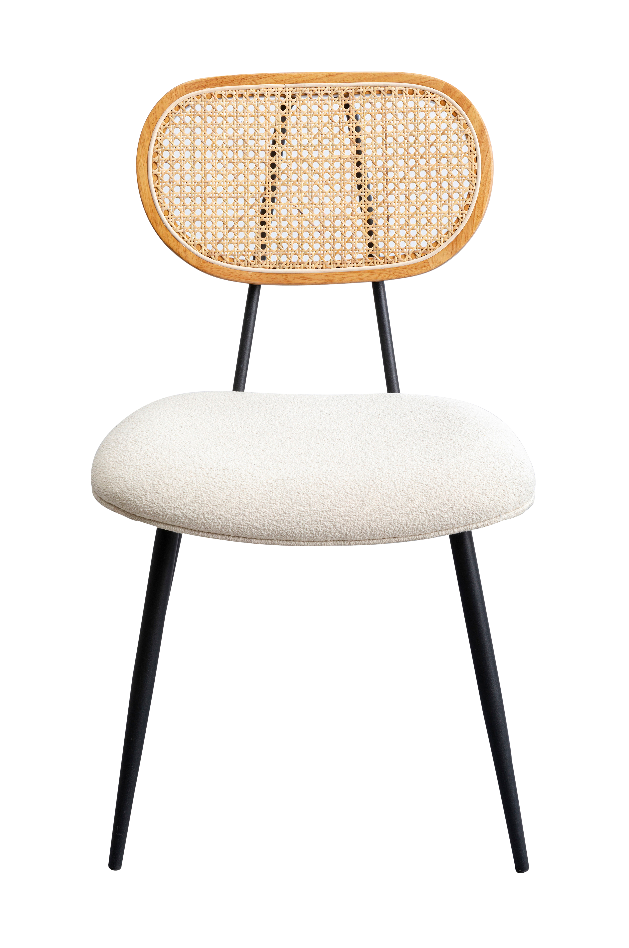 Spisebordsstolen Rosali i retrostil. Metalben, betrukket sæde og detaljer i rotting.