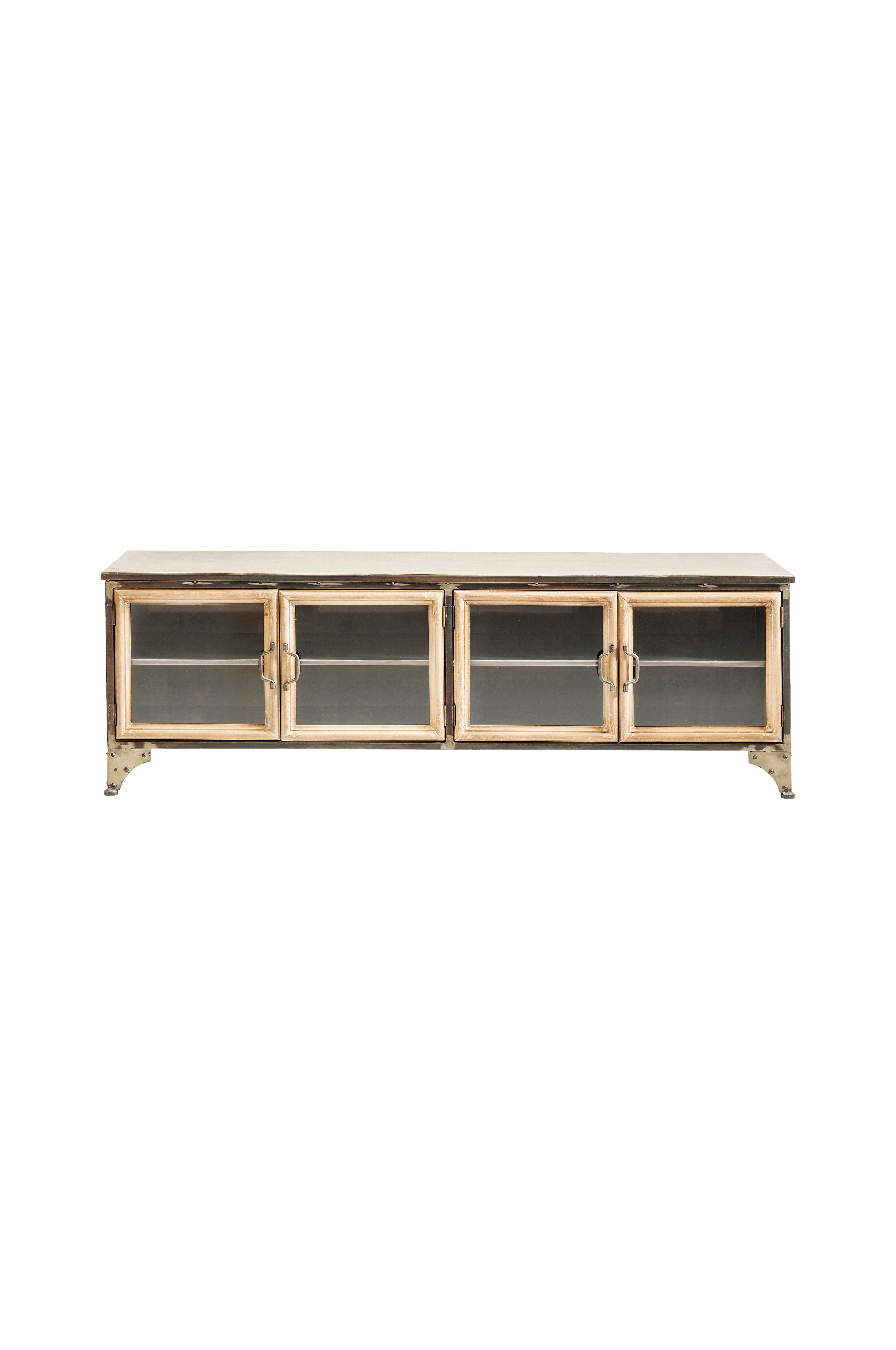 Flot tv-bænk fremstillet af metal og glas. Med smukke detaljer som dekorative knoppar og nitter. Leveres samlet.