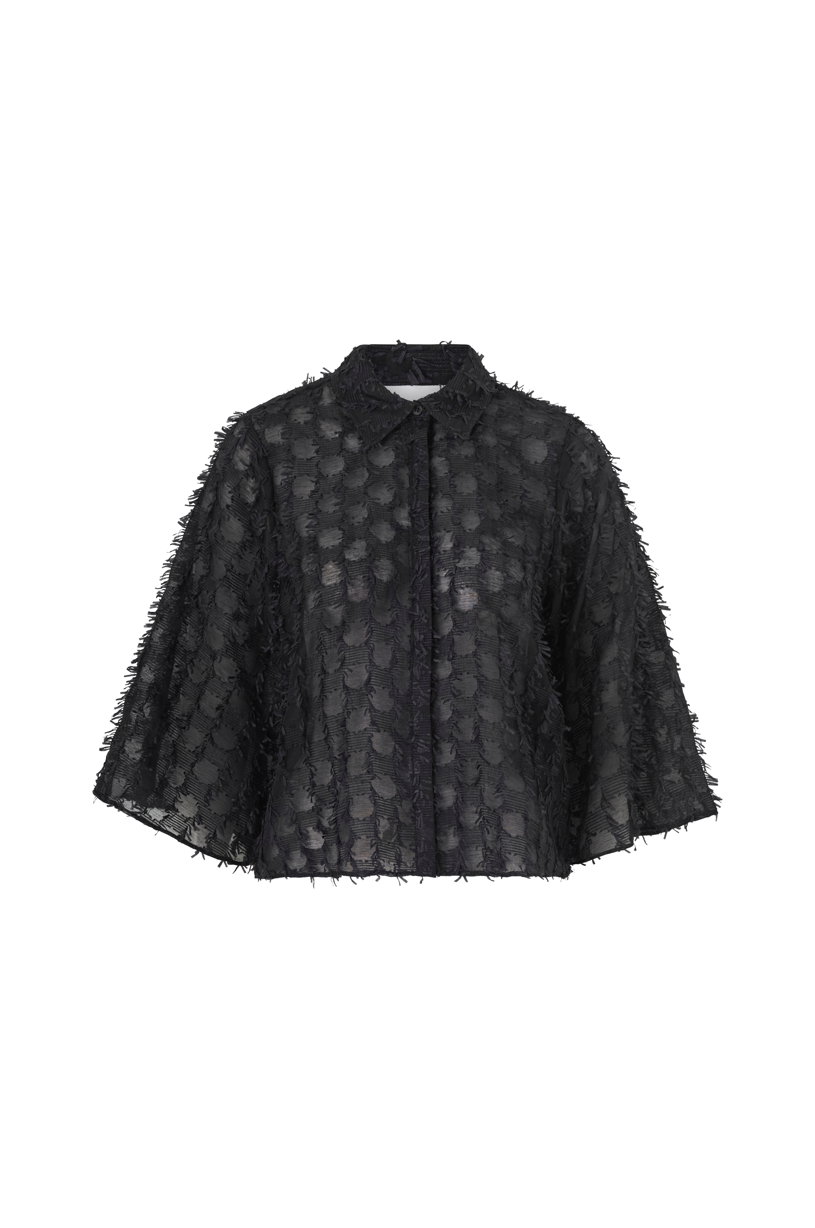 • Lige, mønstervævet model i chiffon• Lille krave• Skjulte knapper foran• Bredt, 3/4 langt ærme med svaj
