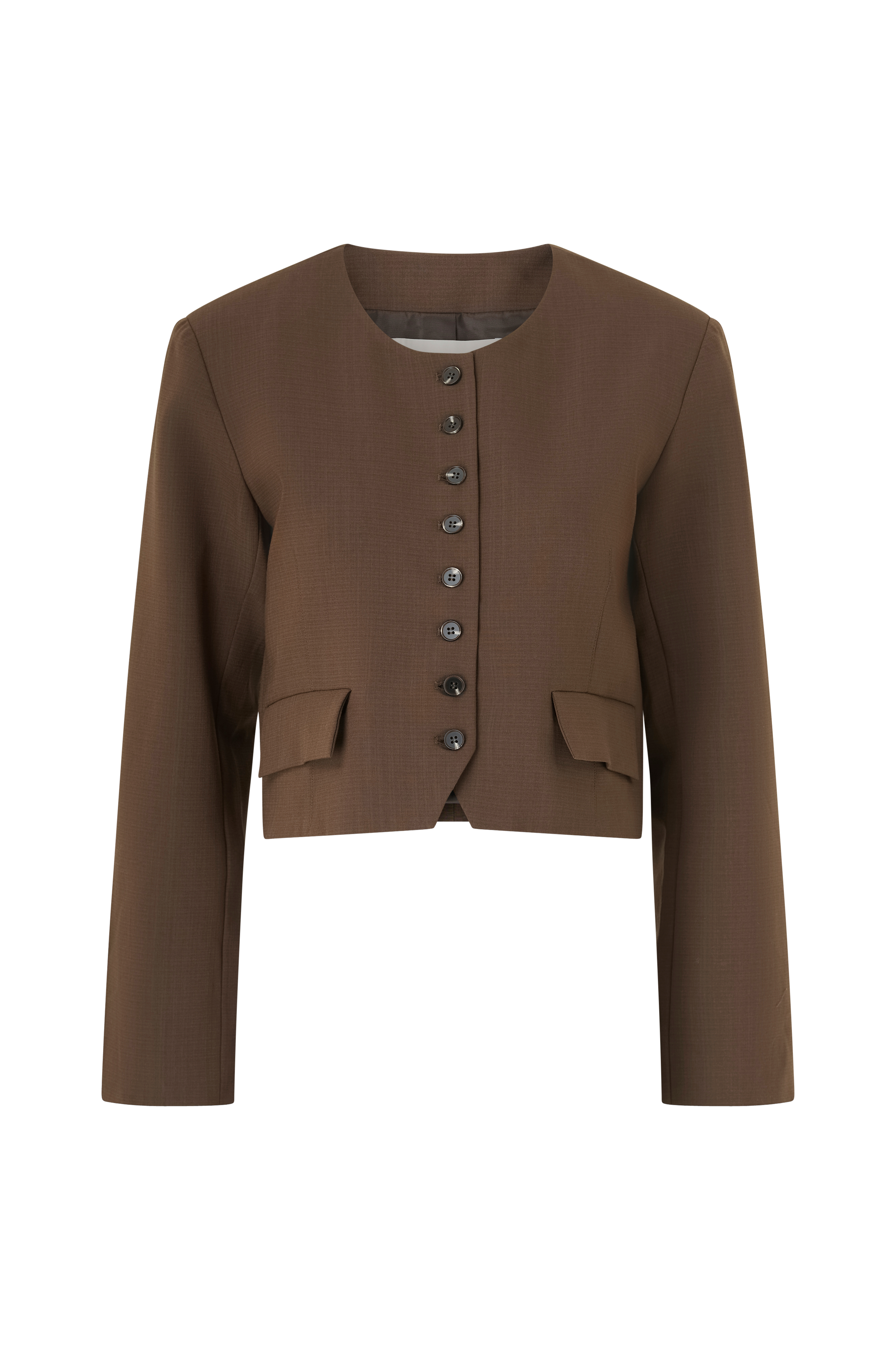 • Kort jakke med rund halsudskæring og skulderpuder