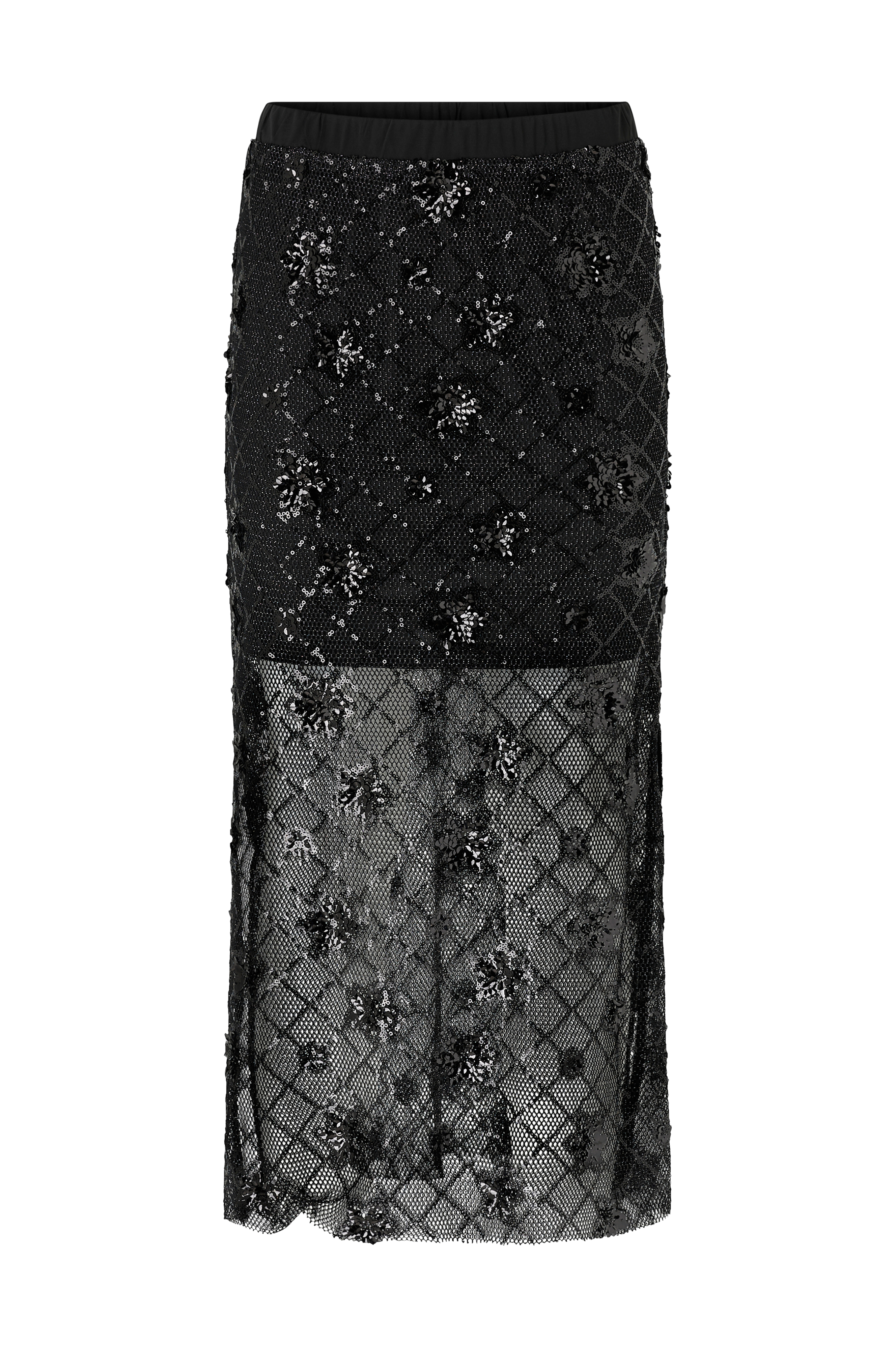 • Nederdel i glitrende mesh med pailletbesatte blomster• Elastisk talje• Kort petticoat i jersey• Slidser nede i siderne• Længde: 88 cm i størrelse S