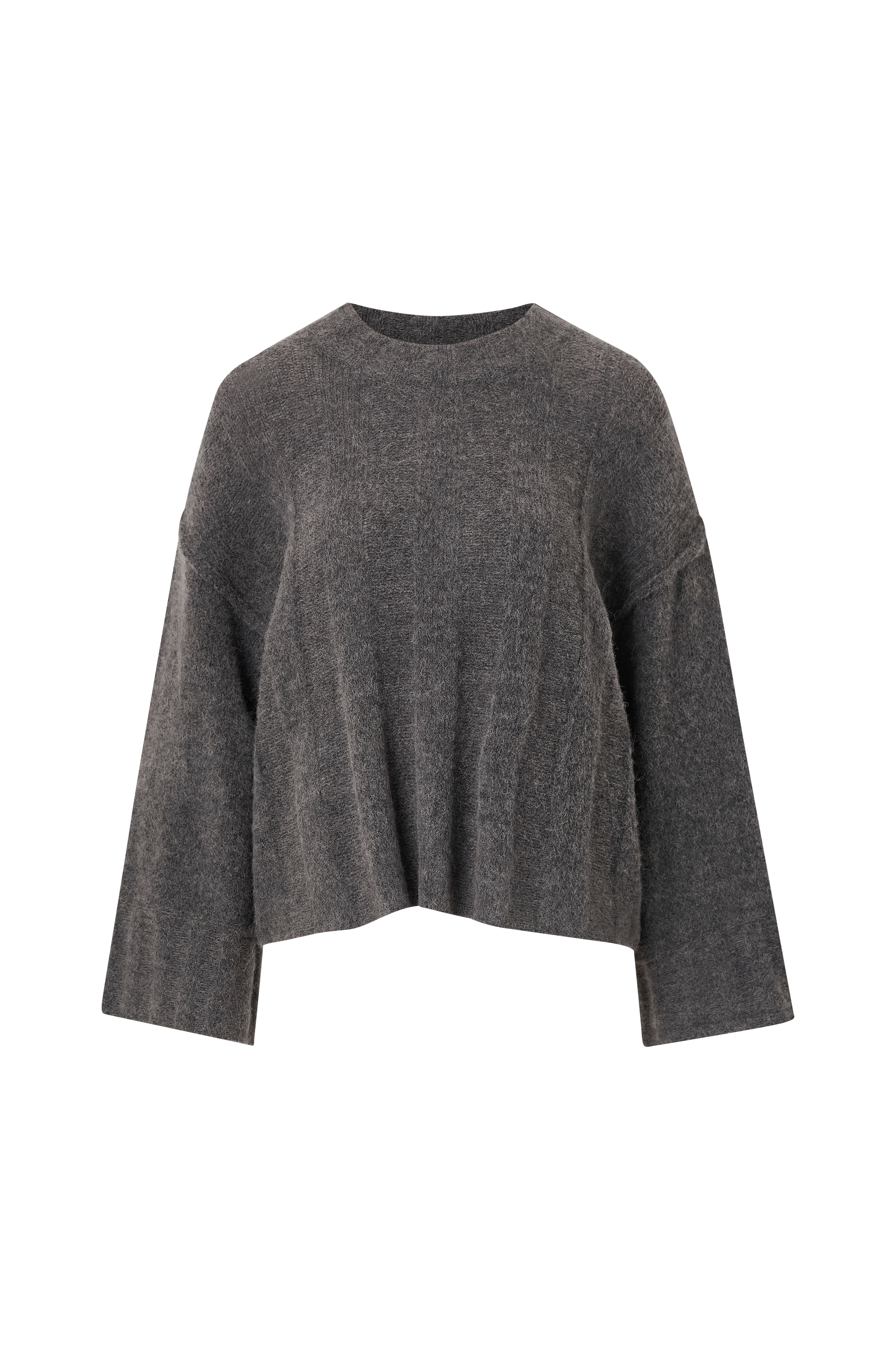 • Fintstrikket Pullover i alpakablanding med rund halsudskæring• Lange, brede ærmer med nedsænkede skuldre• Bred ribstrik på halsen og ved ærmeafslutningerne