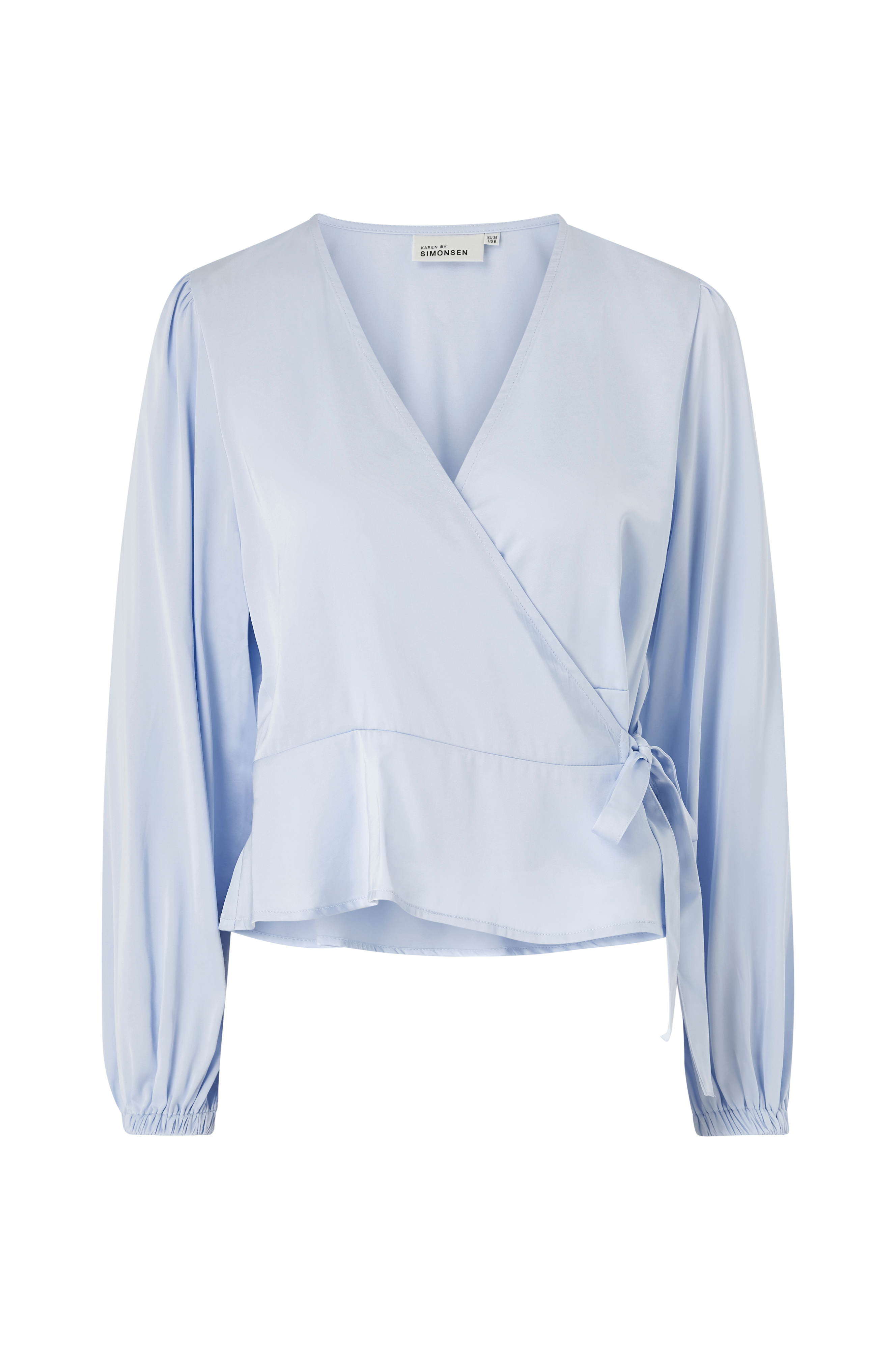 • Åben model i satin med bindbart bånd i siden• Markeret talje• Langt, ekstra bredt ballonærme med elastik ved manchetterne