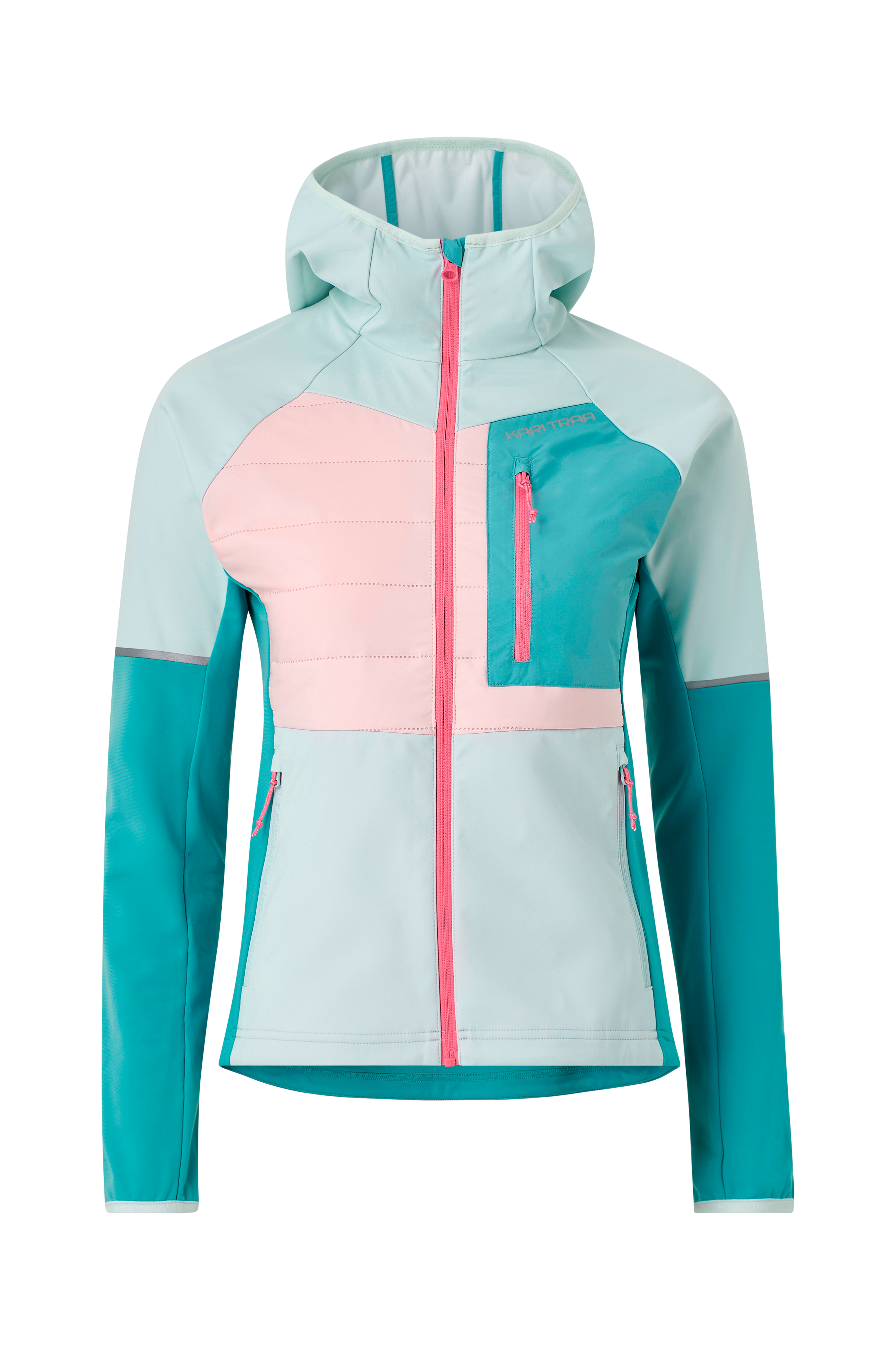 • Vandafvisende stof • Fast hætte • Quiltede, let forede partier oppe foran og oppe bagved • Elastiske paneler i siderne og på ærmerne • Lynlås med skavebeskyttelse ved kinden • Tre lommer med lynlås • Raglanærmer med elastik ved manchetterne • Reflekterende detaljer • Længde: 64 cm i størrelse S