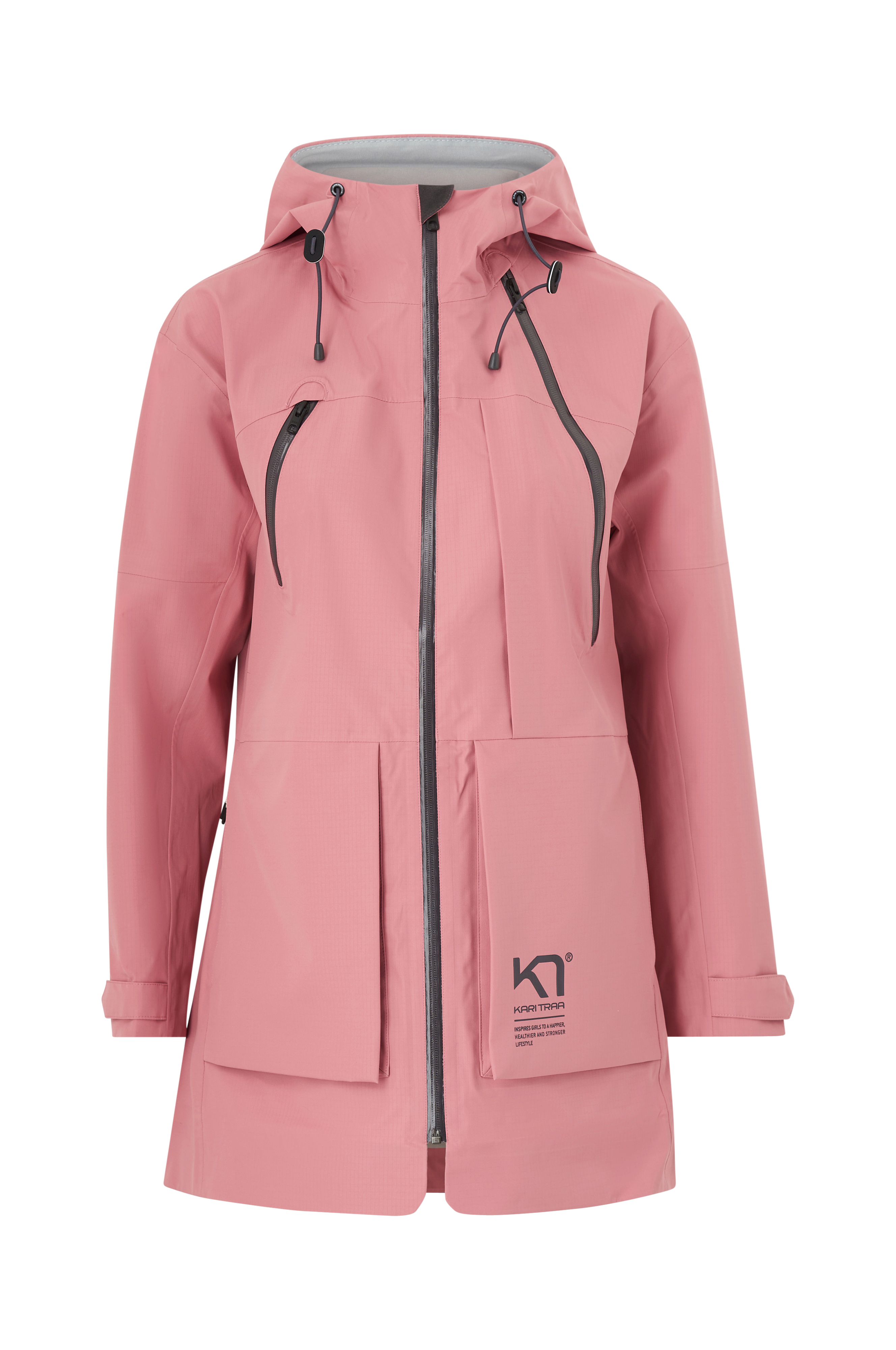 • Vindafvisende, vandafvisende skaljakke • Åndbart materiale med tre lag • Løs pasform • Fast hætte med træksnørre • Høj krave • Lynlås • To store lommer nederst med lynlås • To brystlommer med lynlås • Justérbar vidde ved manchetterne • Længde: 88 cm i størrelse XS