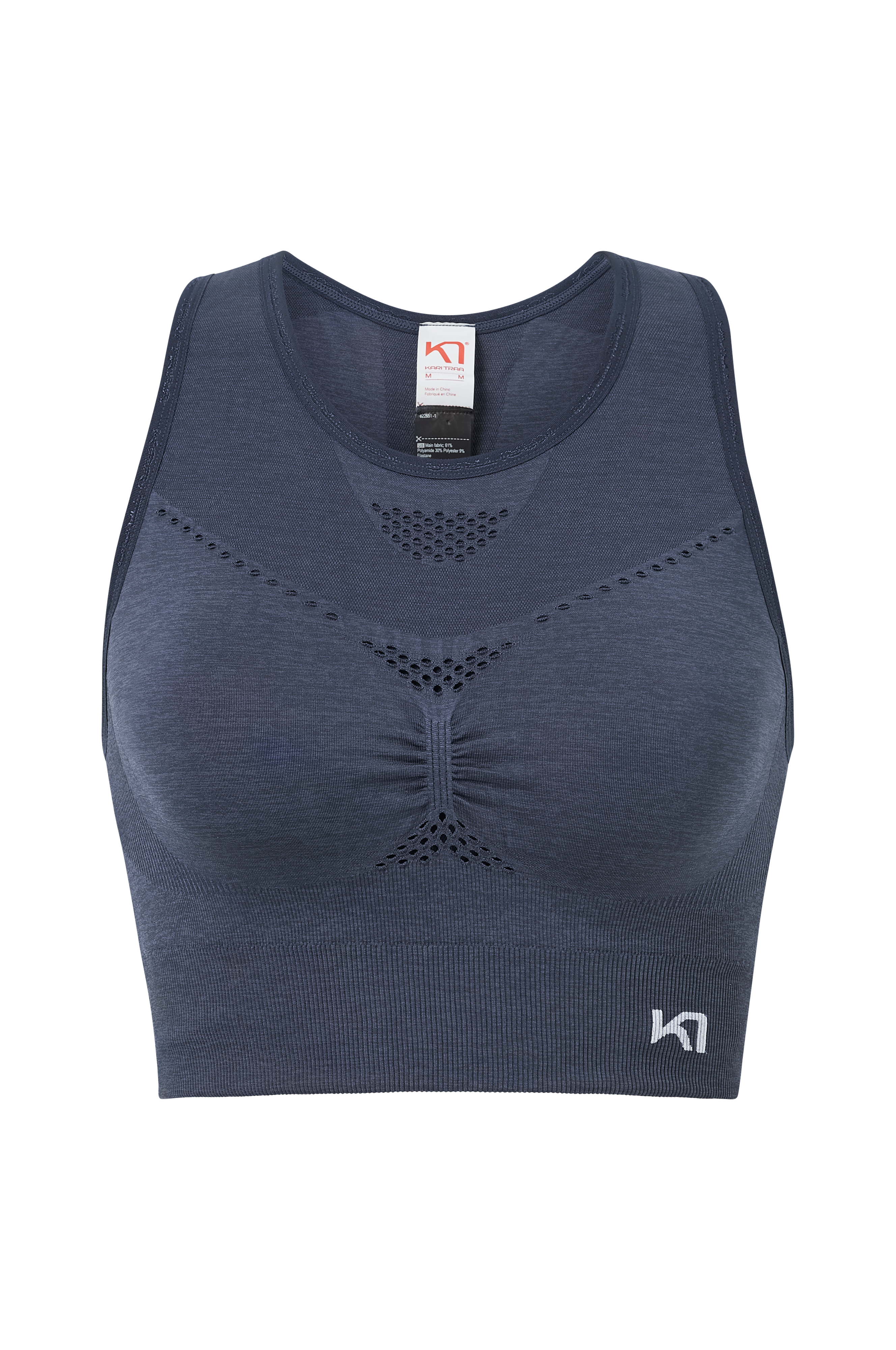 Sports-bh med kompressionspasform i sømløst design. Til træningsaktiviteter med høj intensitet. Materialet er hurtigtørrende, ventilerende og transporterer fugt væk. Udtagelige skåle og detaljer i ventilerende mesh.