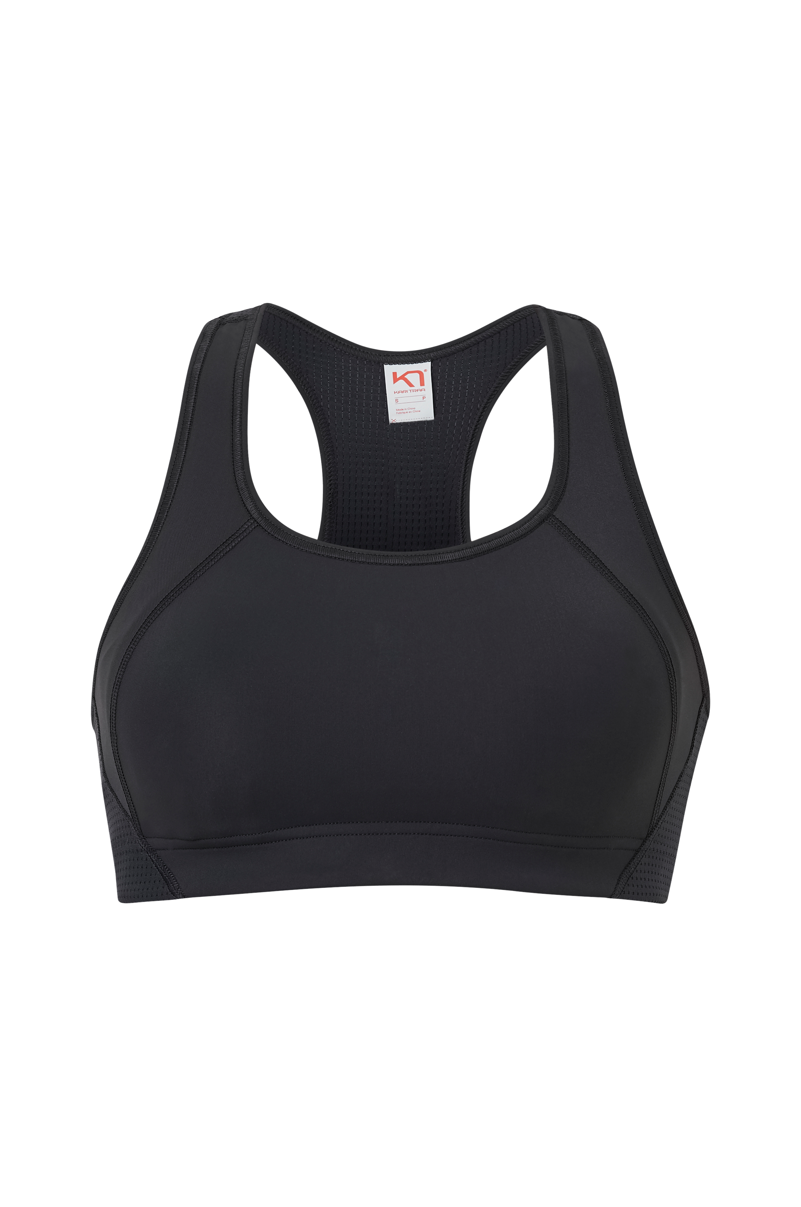 • Sports-bh i elastisk, hurtigtørrende polyamid-blanding med perforerede paneler i mesh• Medium support• Blød elastik nederst