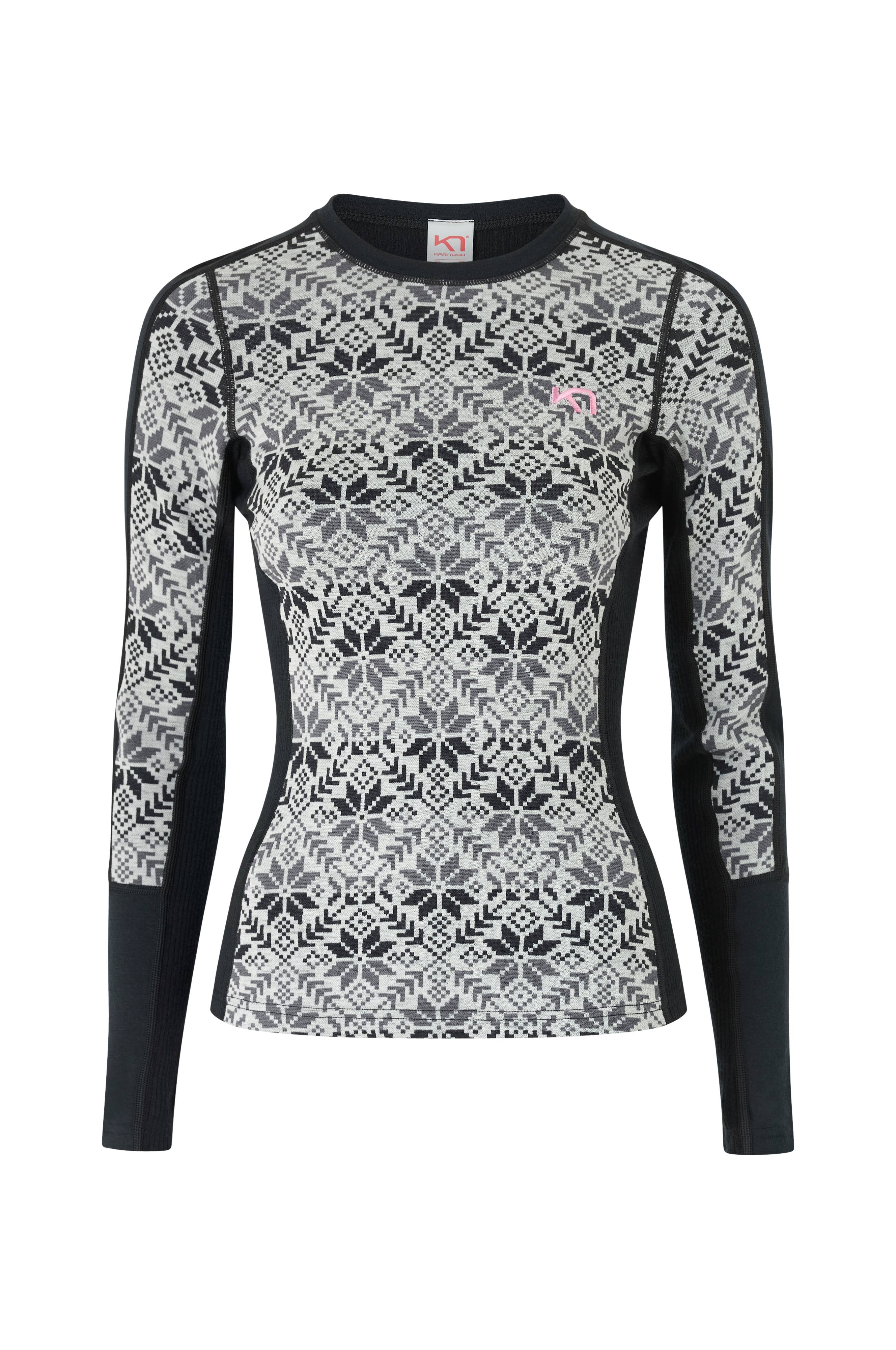 • Jacquardstrikket termisk top i merinould• Rund halsudskæring• Raglanærmer• Ribbede, elastiske paneler langs siderne, på ryggen og langs ærmerne• Bløde, flade flatlock sømme• Hurtigtørrende
