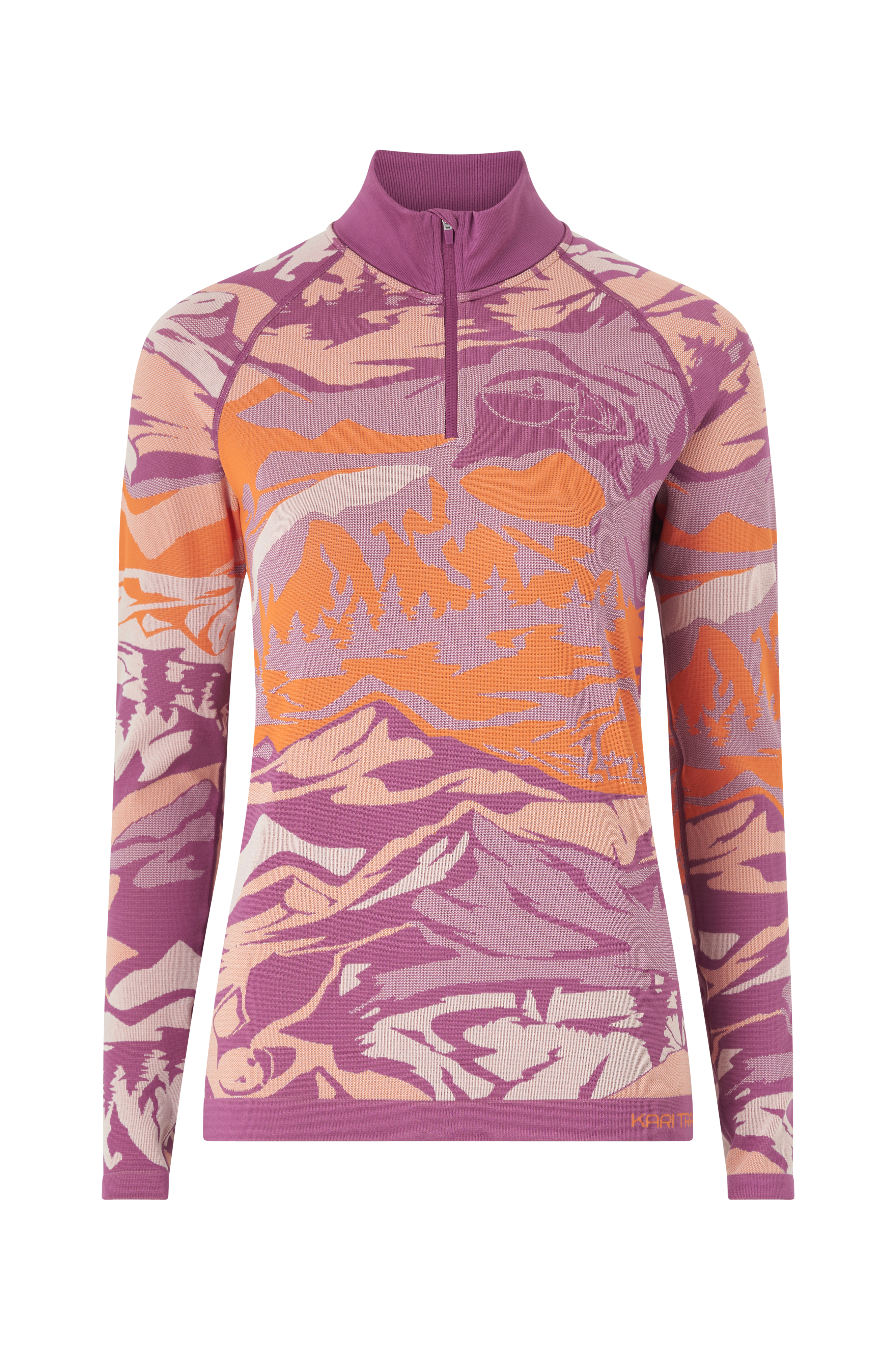 • Jacquardstrikket termisk top• Smal pasform• Sømløst design• Firevejsstræk• Bløde, flade flatlock sømme• Høj, ribbet krave• Kort lynlås• Raglanærmer