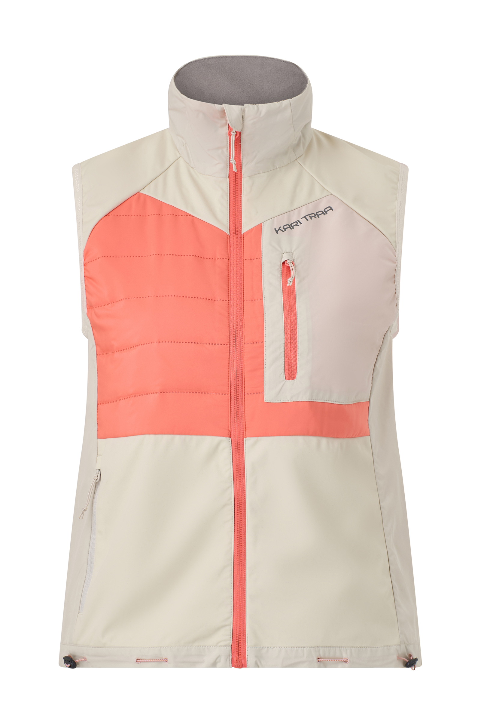 • Træningsvest med opretstående krave• Blødt for på indersiden af kraven• Lynlåslukning foran• Hagebeskytter• Polstring oppe foran og bagpå• To lynlåslommer• Justérbar søm med træksnørre og stopper• Refleksdetaljer