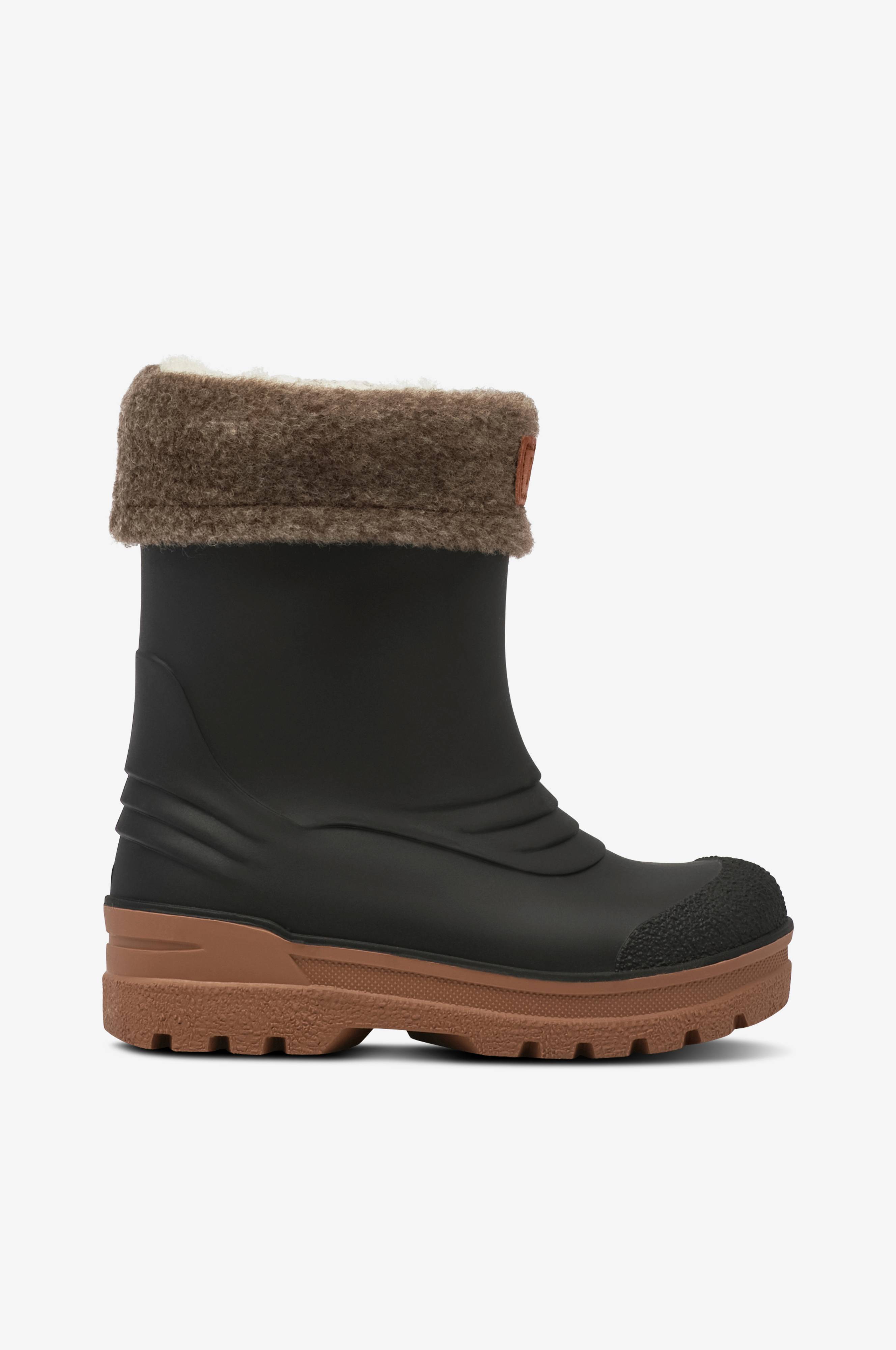 En praktisk gummistøvle som fuldender skogarderoben ved regn, tøsne og sjap. Støvlen er helstøbt i genanvendelig, moderne SEBS-gummi, fri for PVC og 100% vandtæt. En varm skøn indersok, der kan tages ud, så den er lettere at tørre. Uldblandningen i sokken gør at foden holdes tilpas varm. Hvis støvlen føles for varm kan den bruges uden indersok. Sål med godt greb. Desuden kan støvlen maskinvaskes ved 30°.