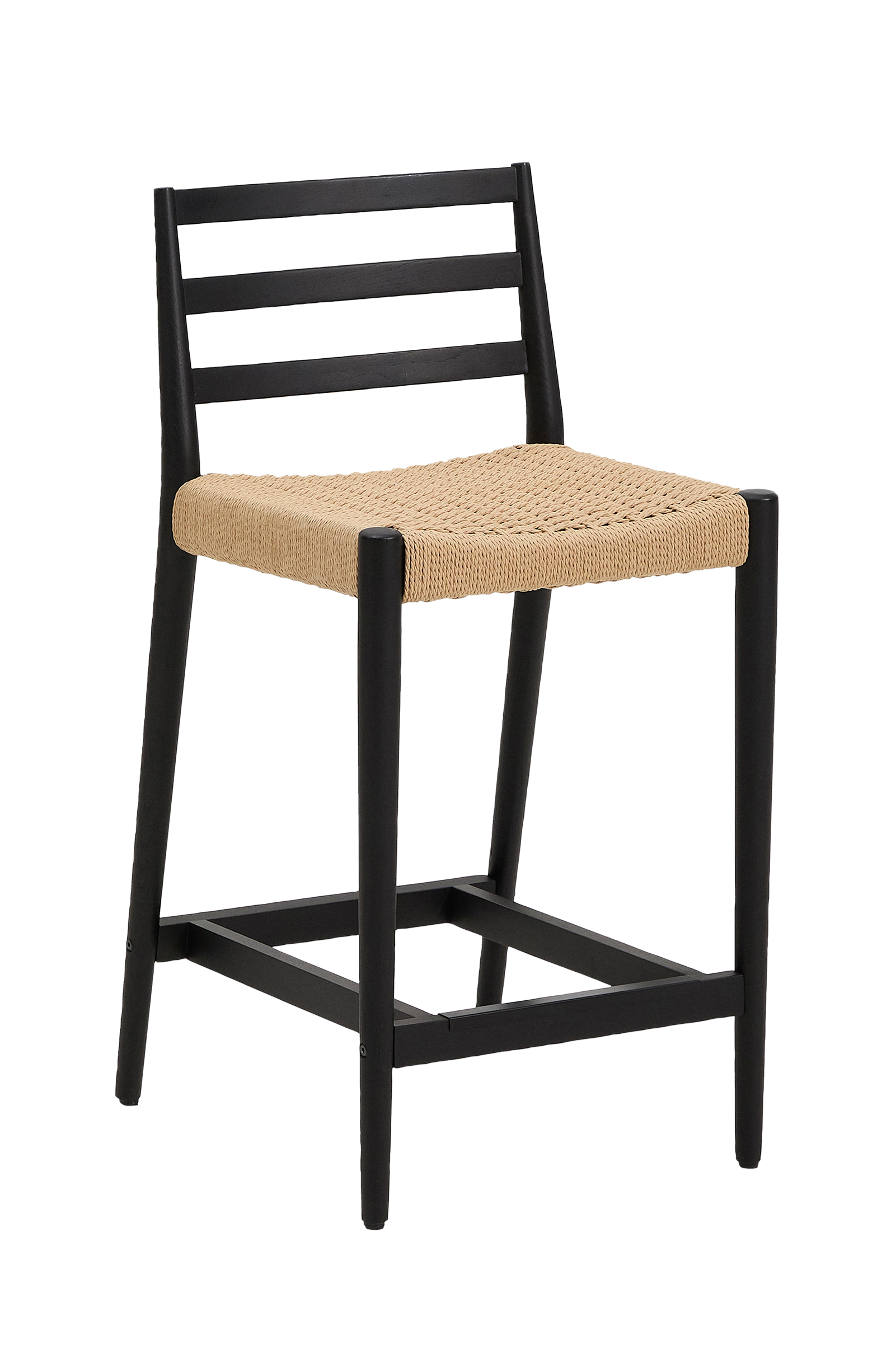Denne taburet med ryglæn kombinerer varmen fra massivt egetræ med autenticiteten fra håndlavet arbejde. Sædet er lavet af håndflettet papirsnor, som giver møblet tekstur og en karakteristisk detalje. Hvert møbel er unikt takket være de naturlige variationer i træet med dets særlige årer og toner, der gør hver skammel til et unikum. Den robuste struktur sikrer stabilitet og holdbarhed, mens ryglænet giver ekstra komfort til daglig brug. Et møbel, der skiller sig ud med sit tidløse design, og som er ideelt til både køkkener, barer og opholdsrum. Produktets bredde: 45 cm. Produktets dybde: 52 cm.